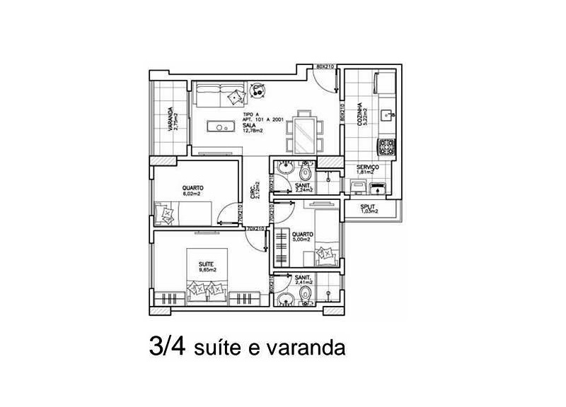 Planta baixa 3 quartos com suíte e varanda Solicite uma proposta: