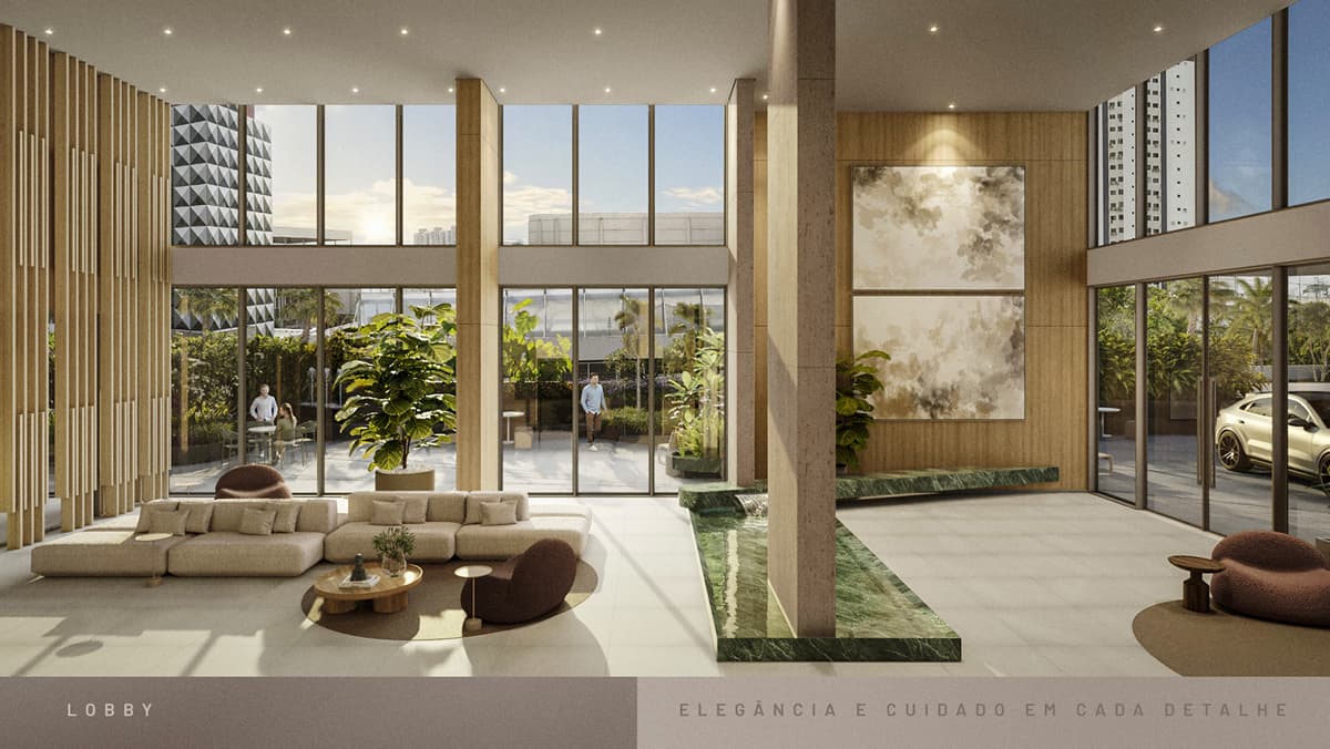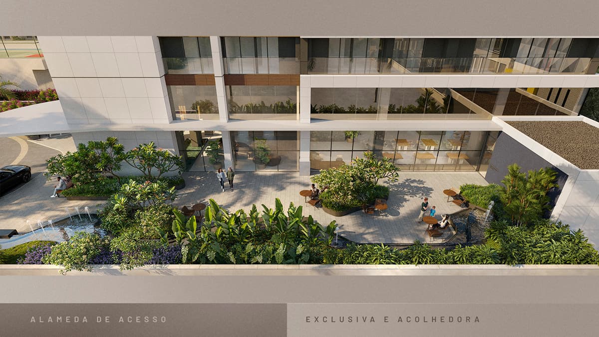 As perspectivas do Beach Class Bahia revelam um projeto contemporâneo e sofisticado. As imagens evidenciam a integração entre arquitetura, paisagismo e áreas comuns. Cada detalhe reforça a proposta de viver bem no Caminho das Árvores.