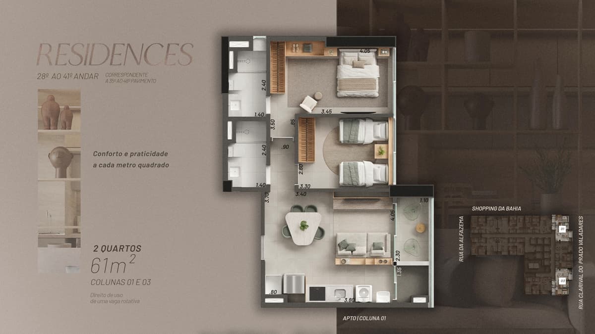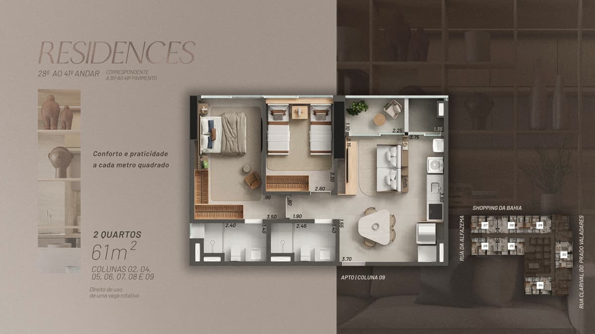 | Residences | 2 | Vaga rotativa | 61,11 m² a 61,79 m² |