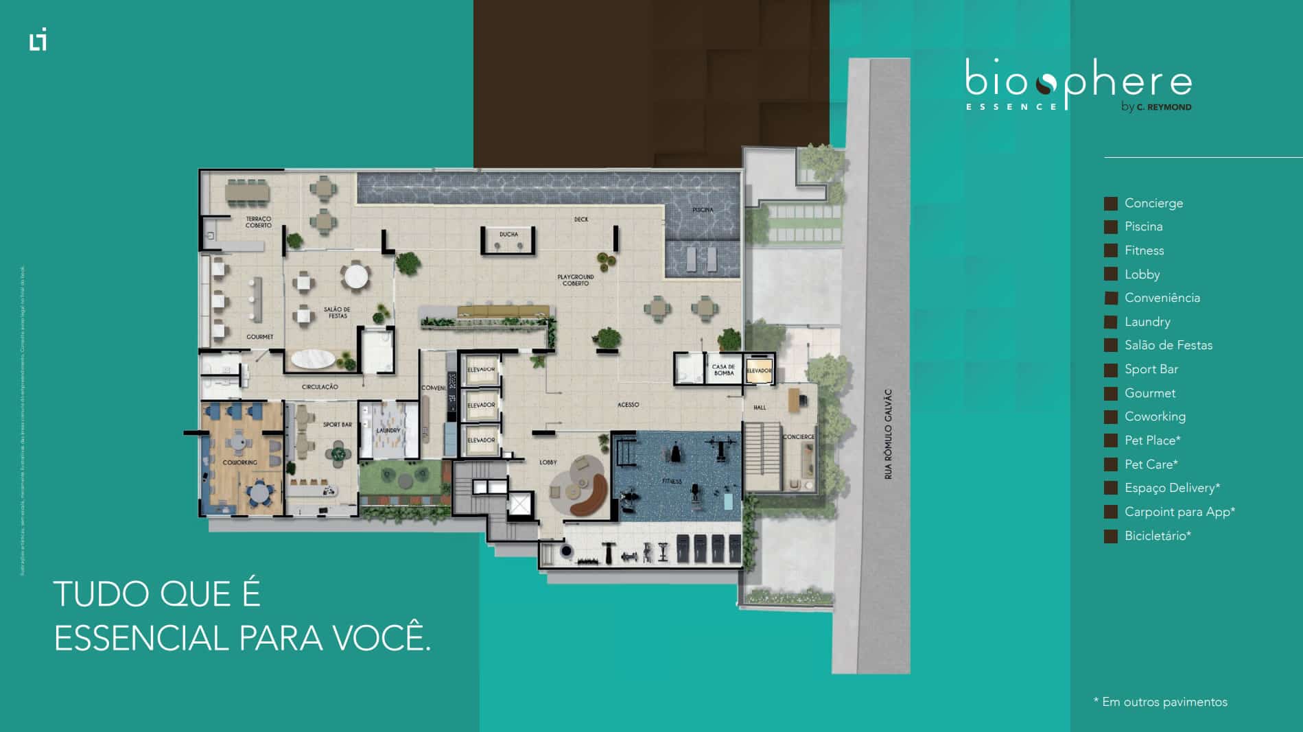 - Bicicletário: Para os amantes do ciclismo, o bicicletário do Biosphere Essence oferece um local seguro e acessível para guardar suas bicicletas, incentivando um estilo de vida ativo e sustentável.