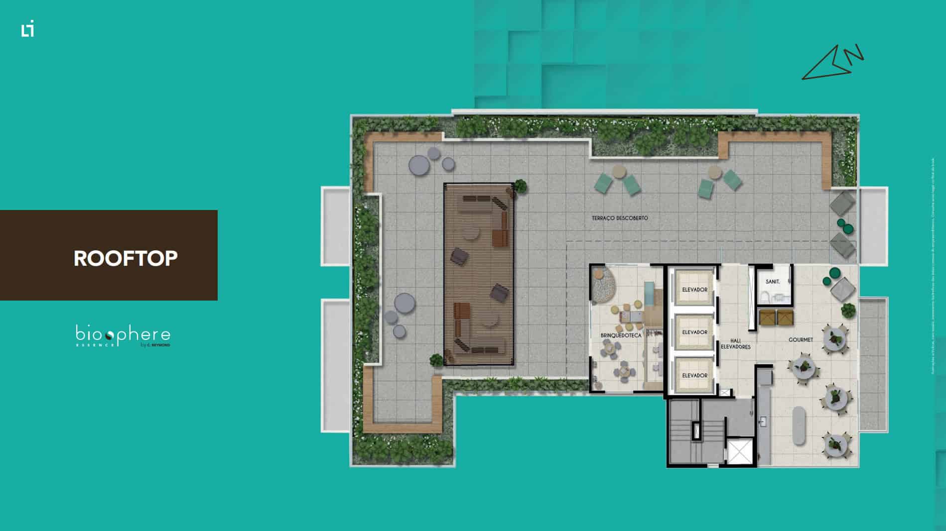- Rooftop: Uma vista panorâmica espera por você no rooftop do Biosphere Essence. É o lugar perfeito para contemplar a cidade, desfrutar de uma bebida com amigos, ou simplesmente relaxar ao ar livre.
