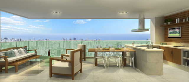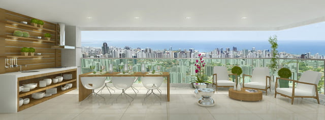 Perspectiva da varanda, na planta de 185,60m2 do Diamond Alto do Itaigara