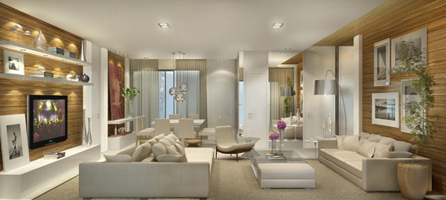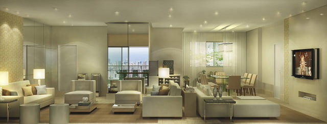Perspectiva do apartamento de 151,65m2 com living ampliado