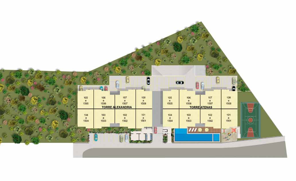 3 quartos (finais 02, 03, 06 e 07) | 3 | 1 | 1 | 71,90m² |