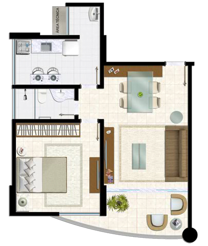 | Tipo quarto e sala | 1 | 1 | 1 | 51,71m² |