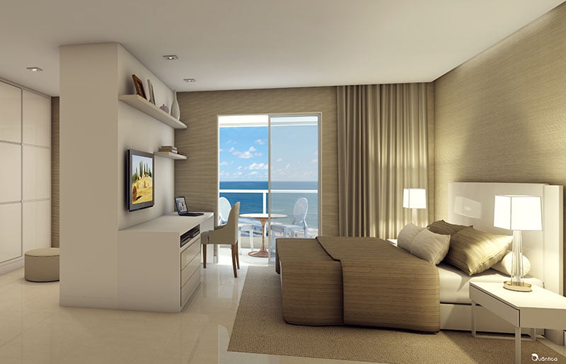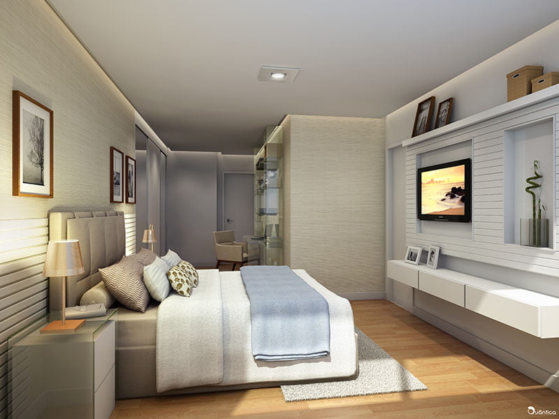 Perspectiva da suíte 01 do apartamento de 140m² – Opção 2