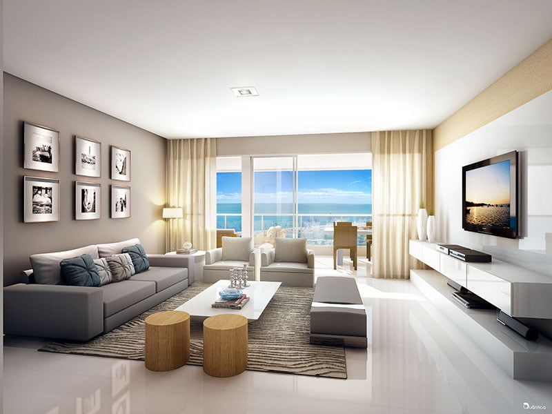 Perspectiva do living do apartamento de 142m² – Opção 01