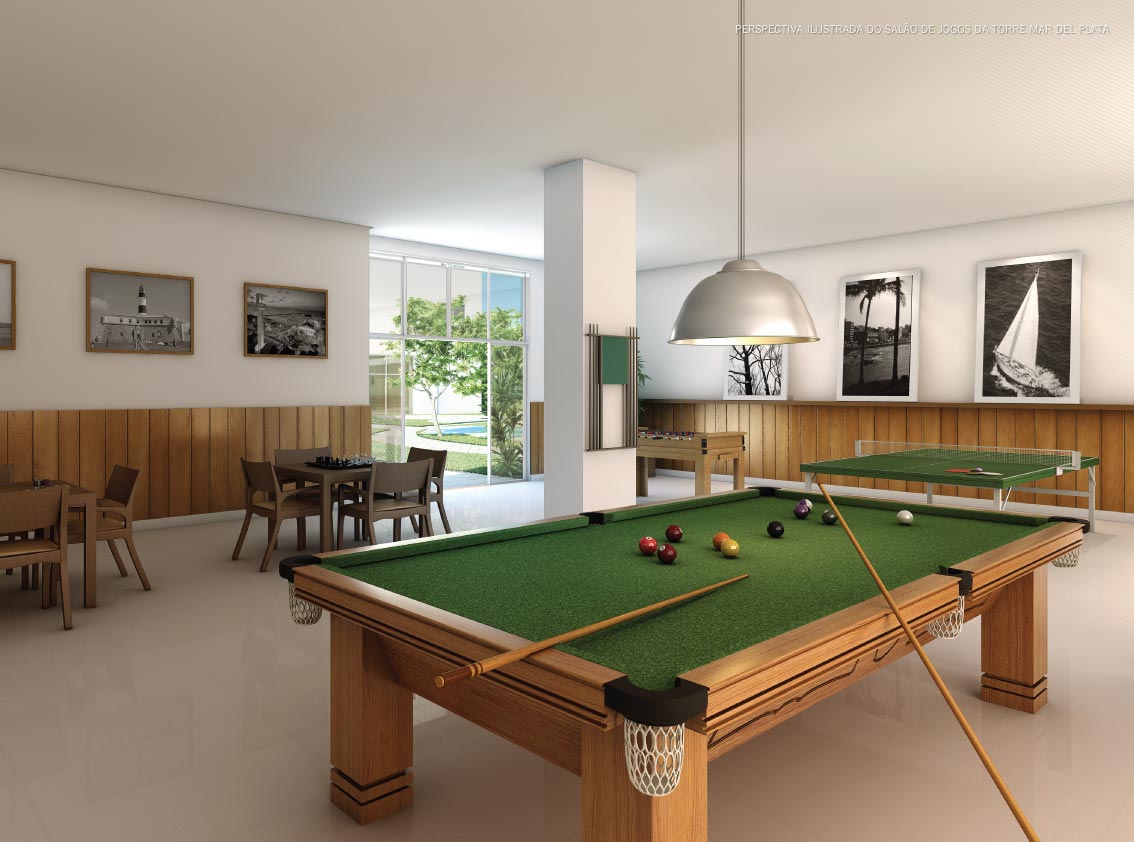 Perspectiva do salão de jogos da torre Mar Del Plata