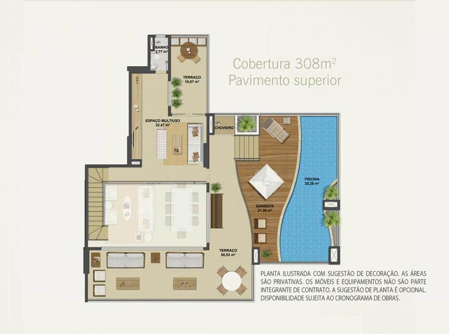 Planta baixa da cobertura de luxo com 308m² Pavimento Superior do Hemisphere 360º
