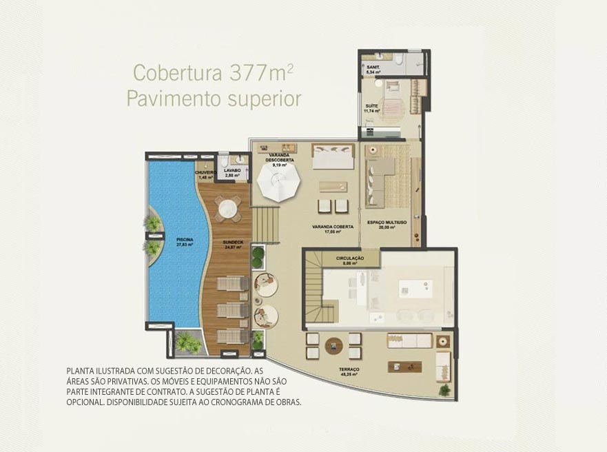 Planta baixa da cobertura de luxo com 377m² Pavimento Superior do Hemisphere 360º