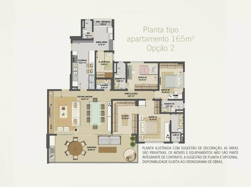Planta baixa do apartamento 165m² – Opção 02 do Hemisphere 360º