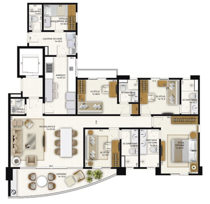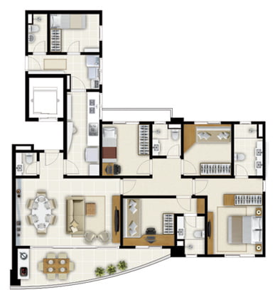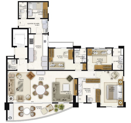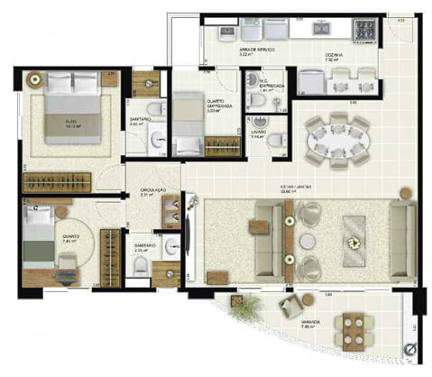 | 3 quartos | 3 | 2 | 2 | 96,68m² |