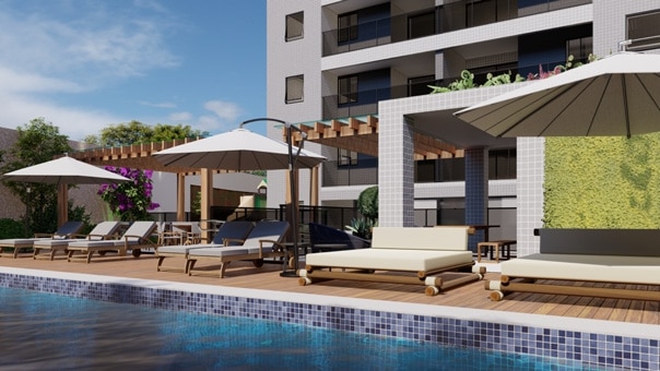 Descubra o prazer de dias ensolarados e relaxantes na exclusiva área da piscina do Jaguaribe OCEAN SIDE, onde cada detalhe foi pensado para o seu conforto e bem-estar.