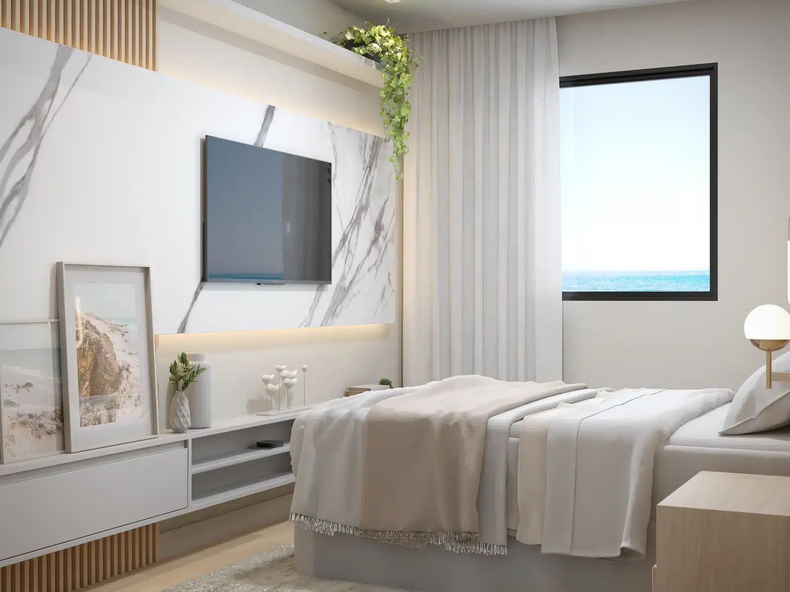 A suíte do Jaguaribe OCEAN SIDE combina conforto e design moderno para criar um refúgio pessoal com vistas inspiradoras do mar.