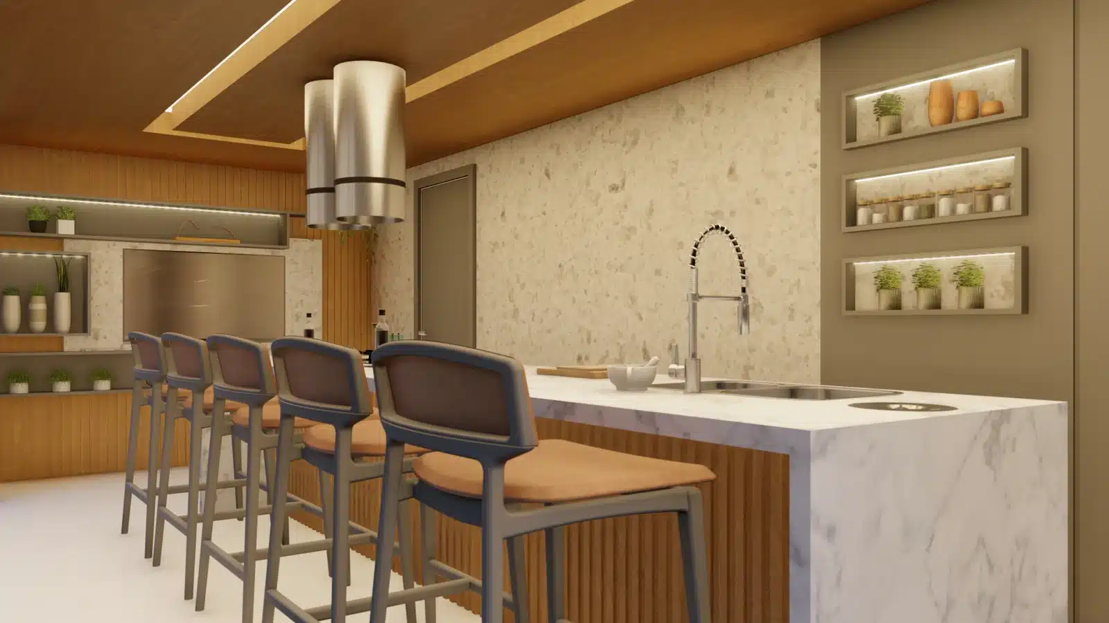 Encontre o equilíbrio perfeito entre design e funcionalidade no espaço gourmet do apartamento duplex 3 quartos do Jaguaribe OCEAN SIDE, onde cada refeição se transforma em uma experiência memorável.