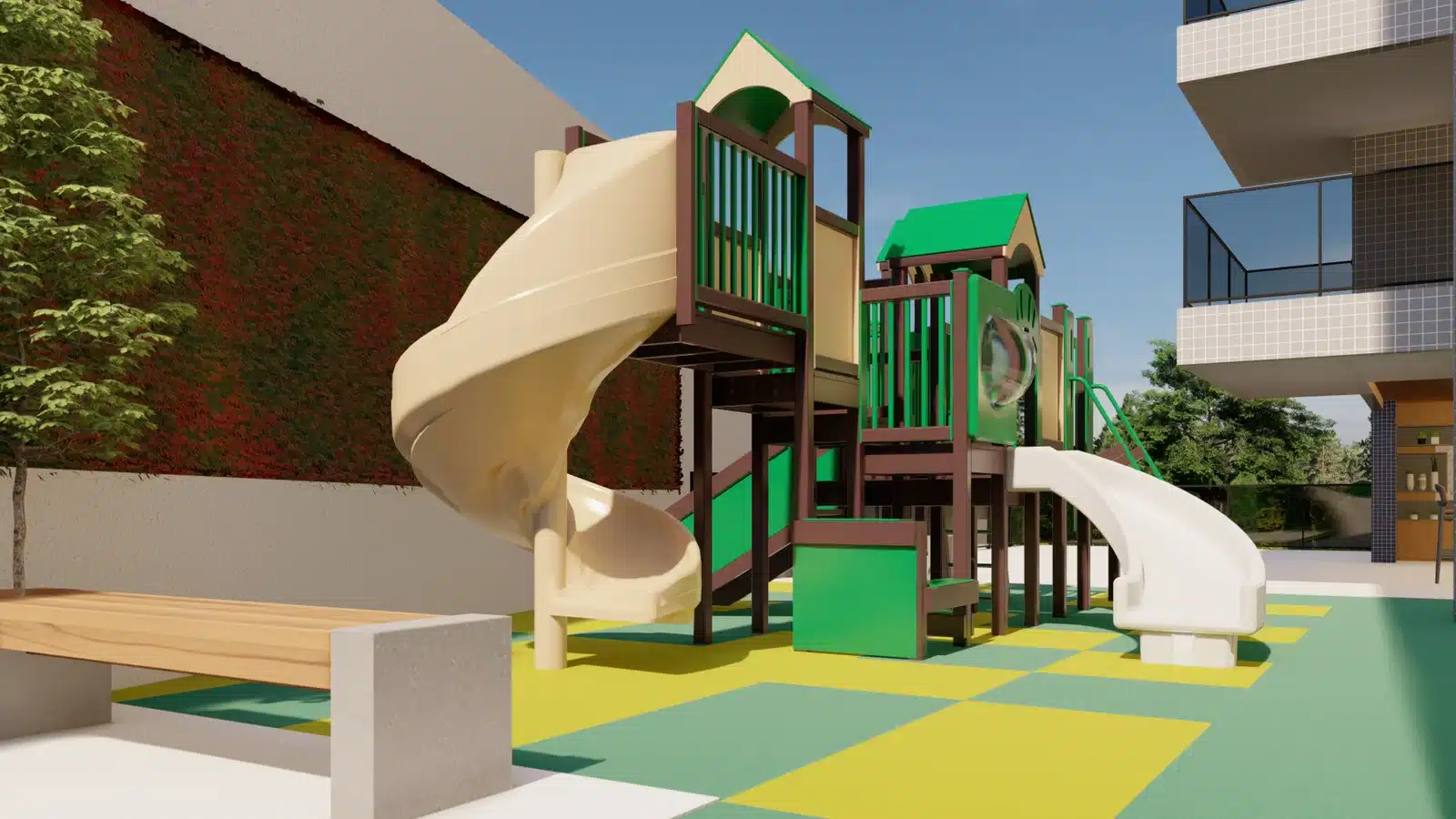 O espaço de brincadeiras do Jaguaribe OCEAN SIDE oferece o cenário perfeito para as aventuras ao ar livre das crianças.