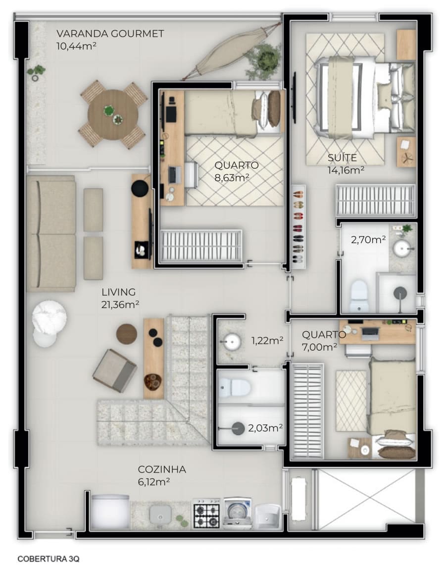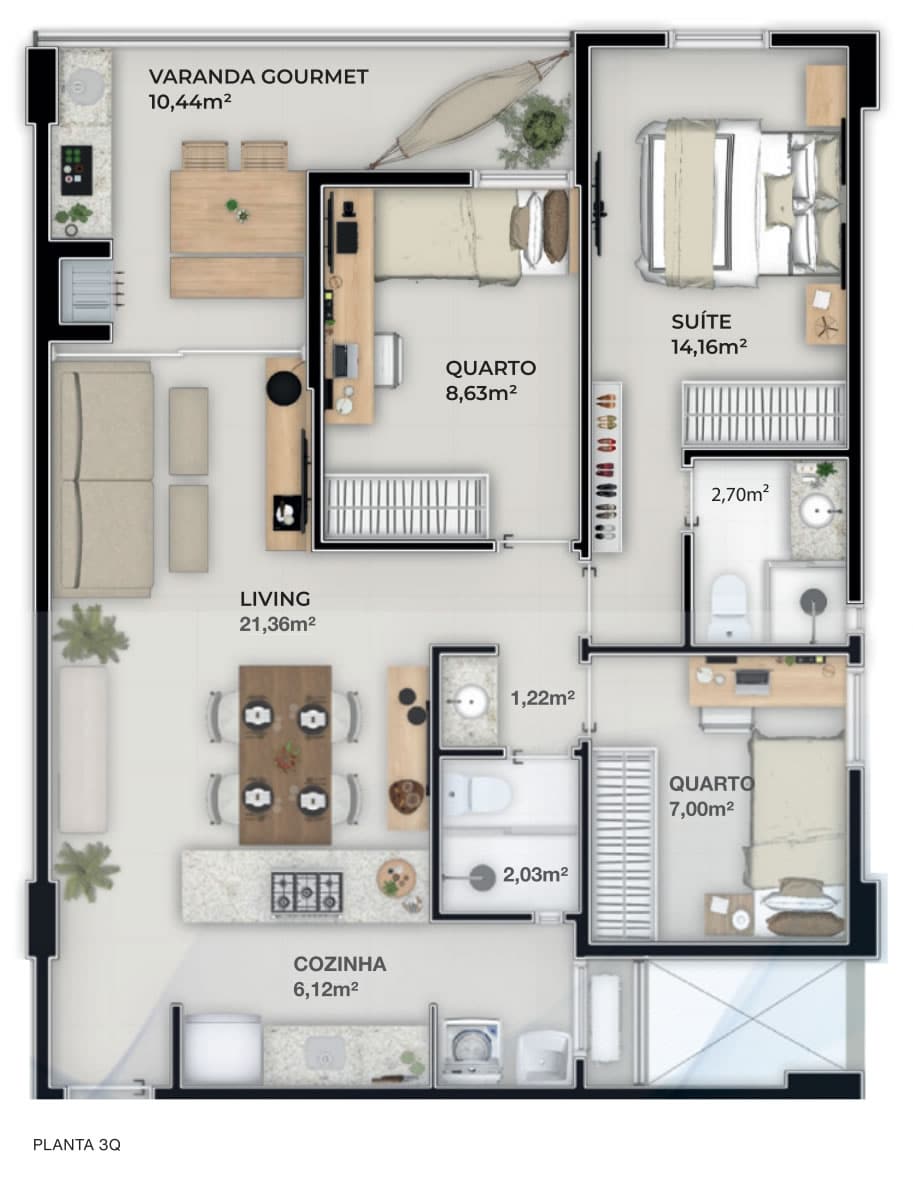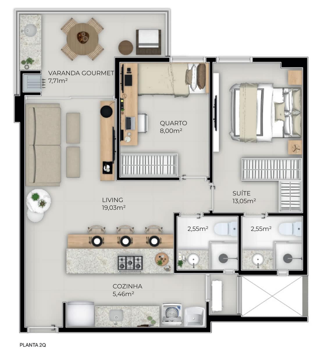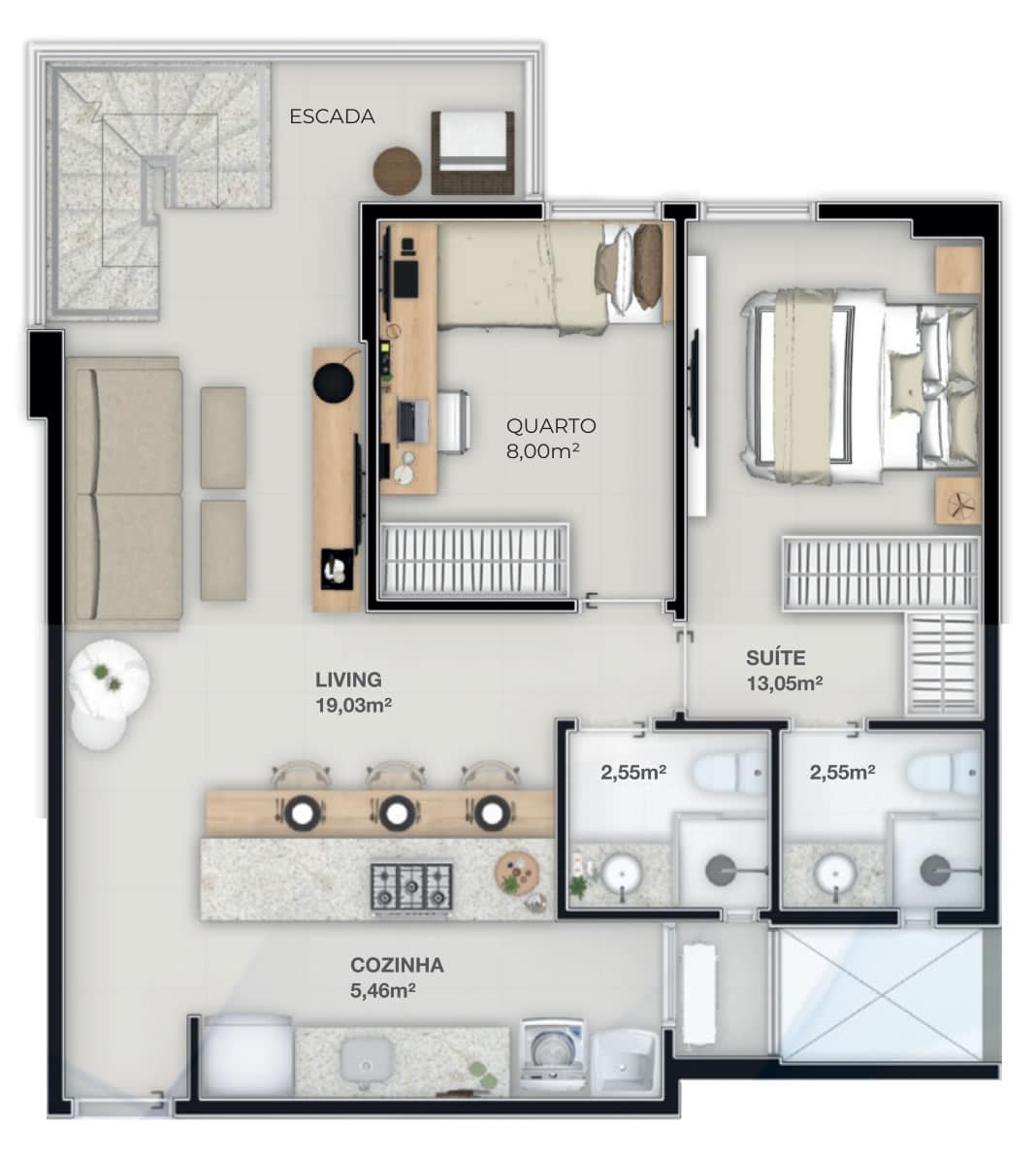 Cada detalhe nos apartamentos do empreendimento foi pensado para oferecer o máximo em conforto e funcionalidade. Com opções de 2 ou 3 quartos, incluindo suítes espaçosas. Os apartamentos contam com porcelanato nas áreas molhadas, paredes internas em dry wall para melhor isolamento acústico e térmico, e uma infraestrutura completa para internet, além de preparação para medição individual de água, gás e energia.