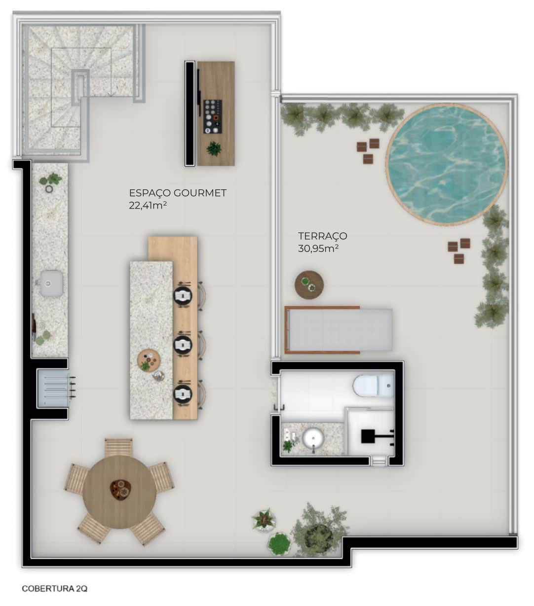 Descubra o auge da sofisticação urbana no pavimento superior da cobertura duplex, um santuário de 163m² com amenidades de primeira classe.