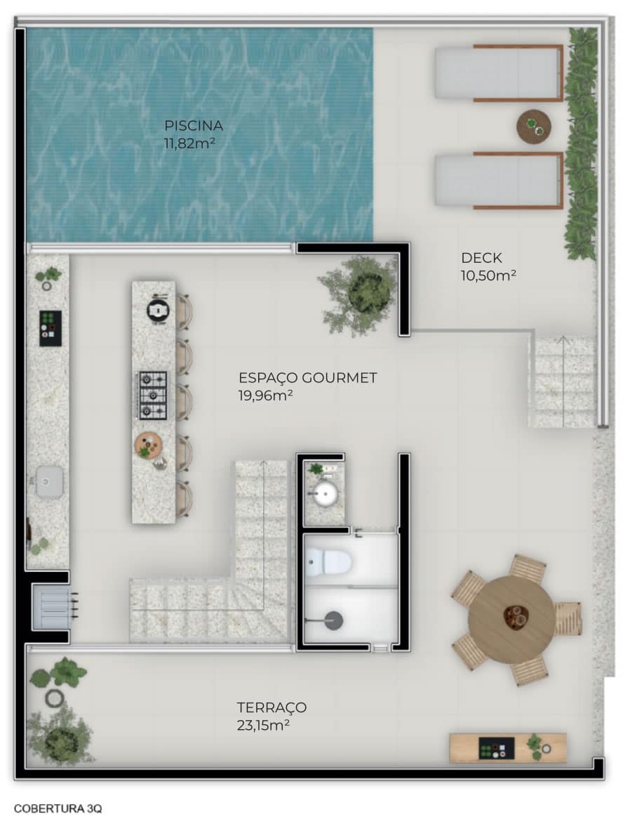 As plantas dos apartamentos e coberturas do Jaguaribe OCEAN SIDE refletem o compromisso com a qualidade de vida. Espaços bem distribuídos que maximizam o conforto e a funcionalidade, garantindo o melhor aproveitamento de cada metro quadrado.