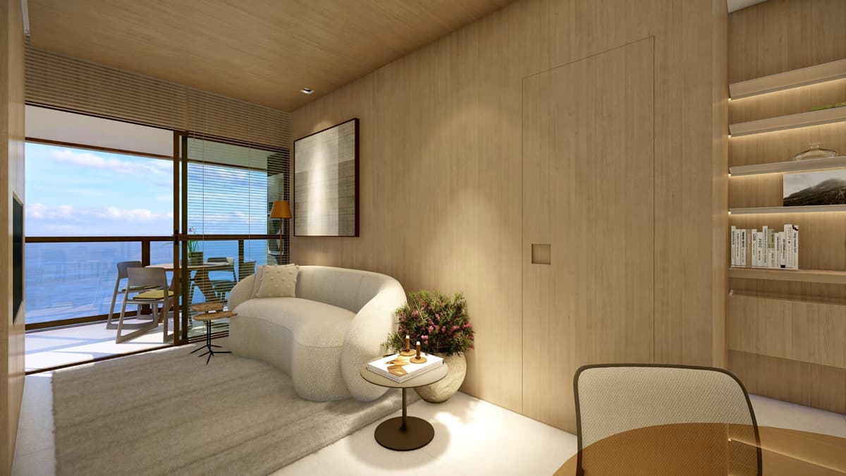 As perspectivas ilustradas do Laut Jaguaribe revelam o estilo de vida que você sempre sonhou: um lar moderno, iluminado e de frente para o mar. Cada detalhe das áreas comuns e das varandas foi planejado para oferecer uma experiência única de conforto e contemplação.