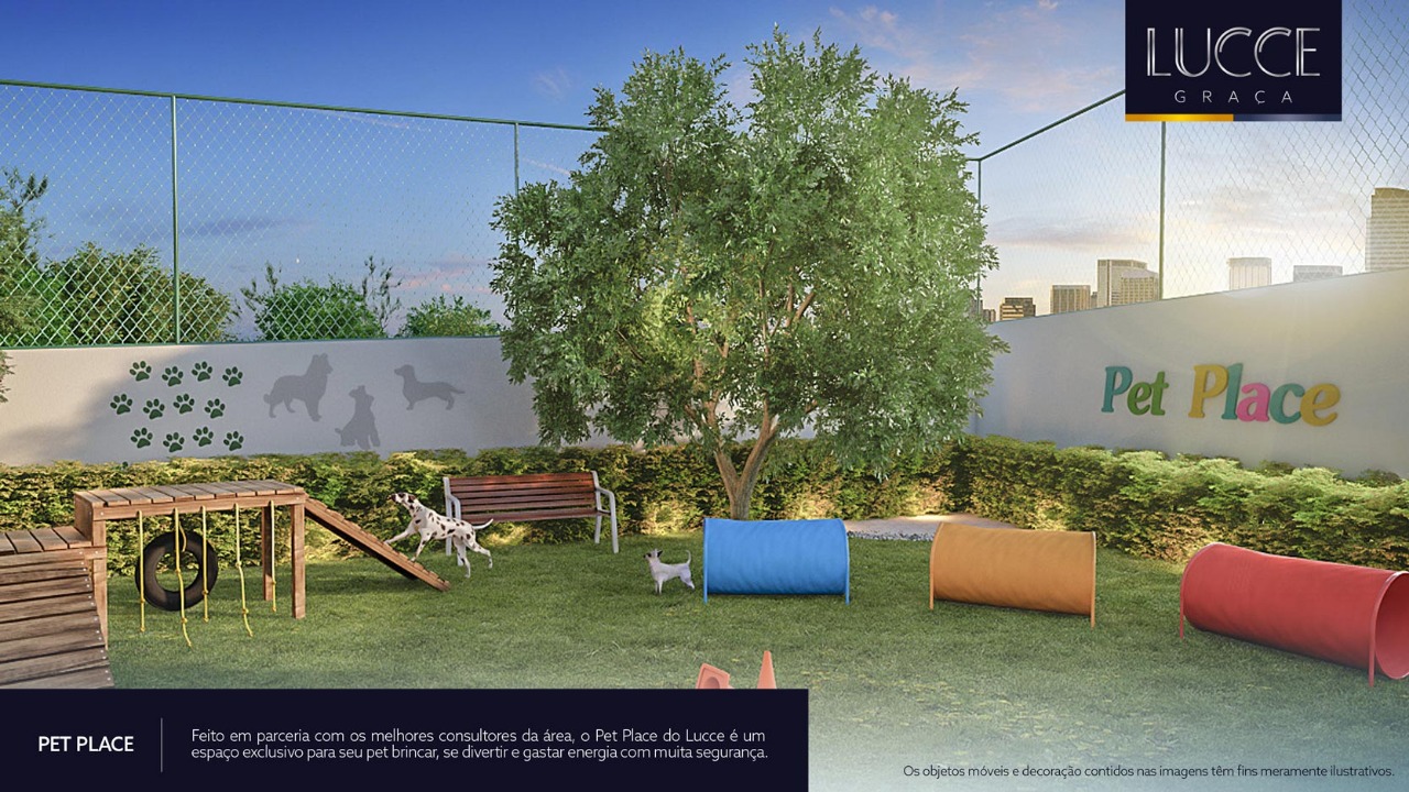 Ele também apresenta o Pet Place, um espaço projetado em parceria com os melhores consultores da área, o Pet Place do Lucce Graça é um espaço exclusivo para seu pet brincar, se divertir e gastar energia com muita segurança.