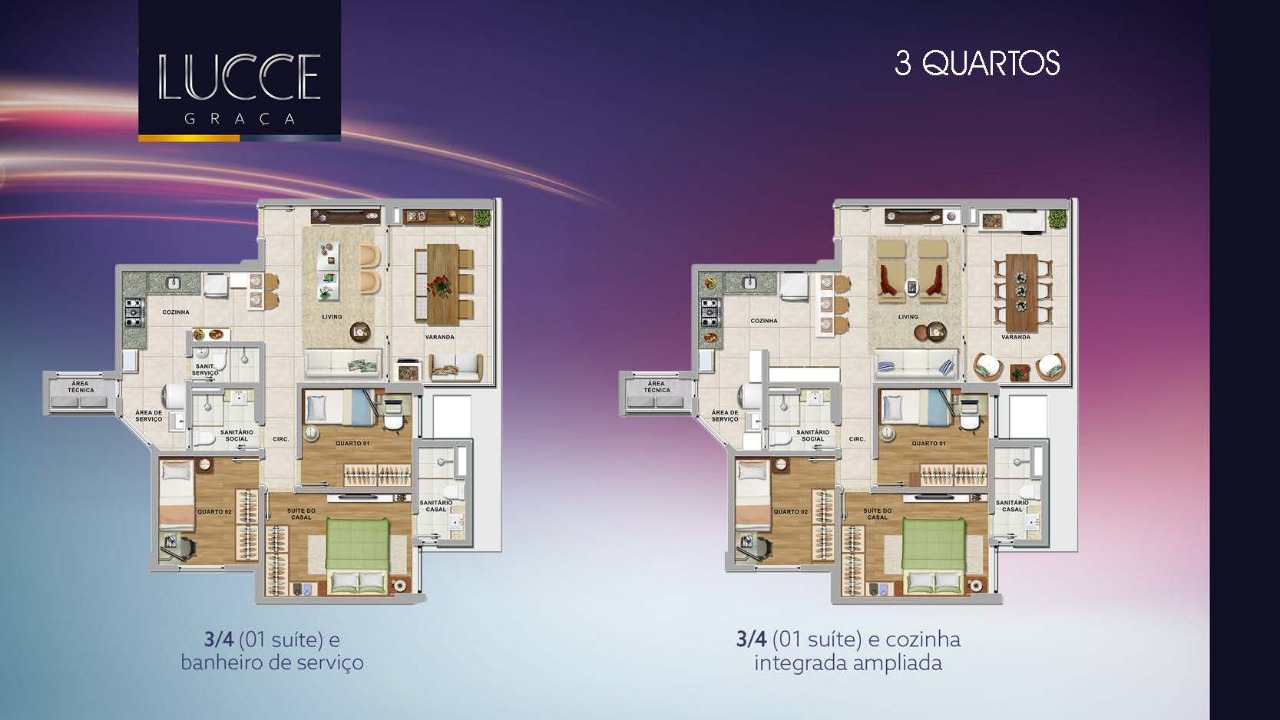 Conheça o Lucce Graça, um lançamento da Civil Construtora e da Barcino Esteve Construtora para o bairro da Graça, em Salvador, Bahia. Um três quartos com design contemporâneo, áreas comuns surpreendentes e 100% sustentável com usina solar, reuso de água da chuva e infra para carro elétrico.. O empreendimento possui 4 opções de plantas para você escolher de acordo com o seu perfil. Opção de 3 quartos com banheiro de serviço, opção de 3 quartos com suíte e cozinha integrada ampliada, opção de 2 quartos com 2 suítes, closet, home office e lavabo e opção de 2 quartos com uma suíte e banheiro de serviço.