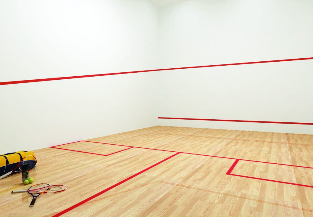 - Quadra de squash com 62,40 m² com sala de estar e sanitário anexos;