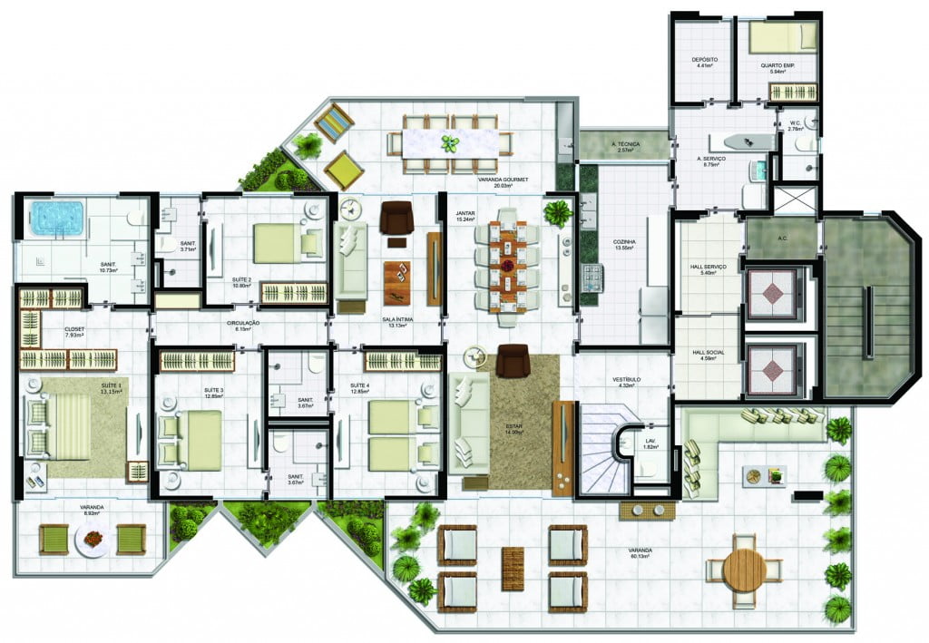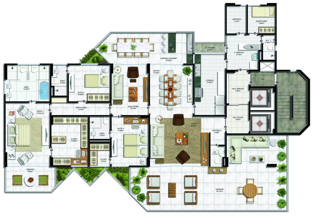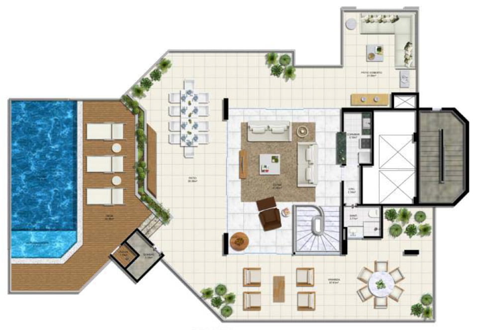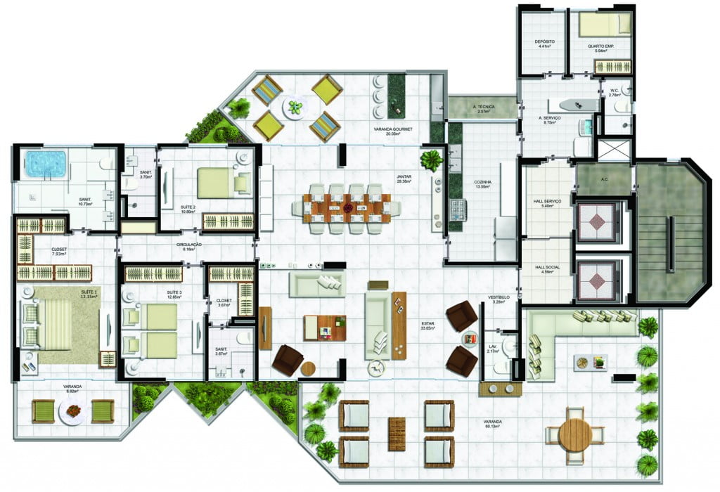 - Varanda com 60m²;