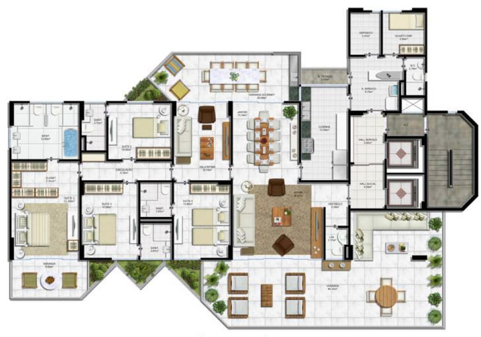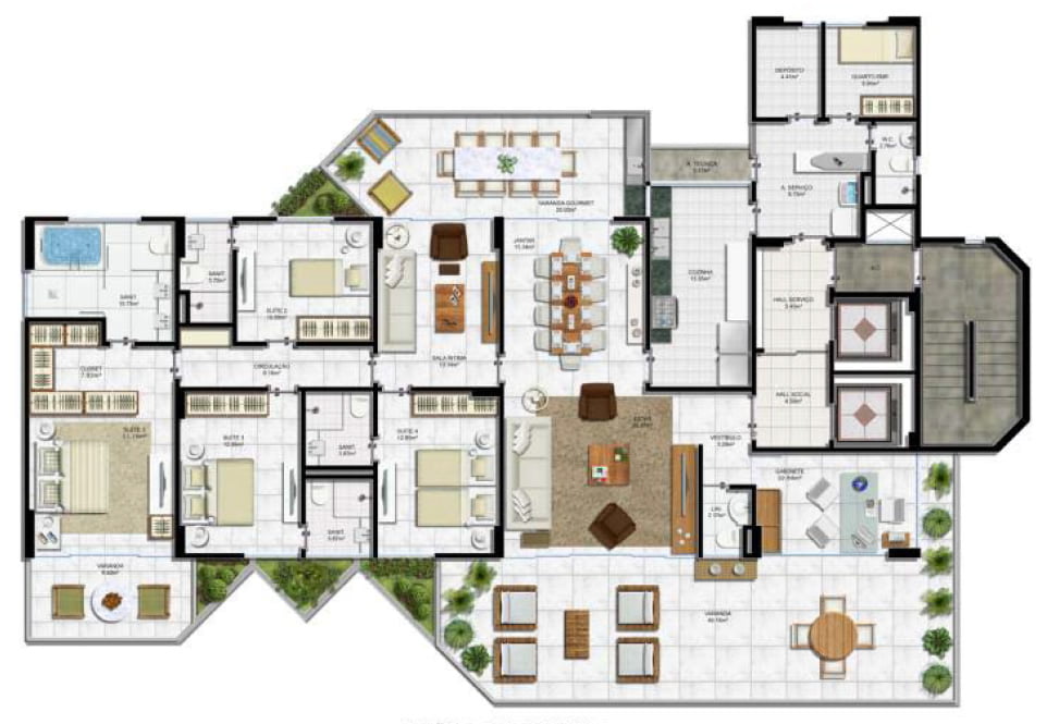 Apartamento Cobertura | 4 | 4 | 5 | 558,14m² |