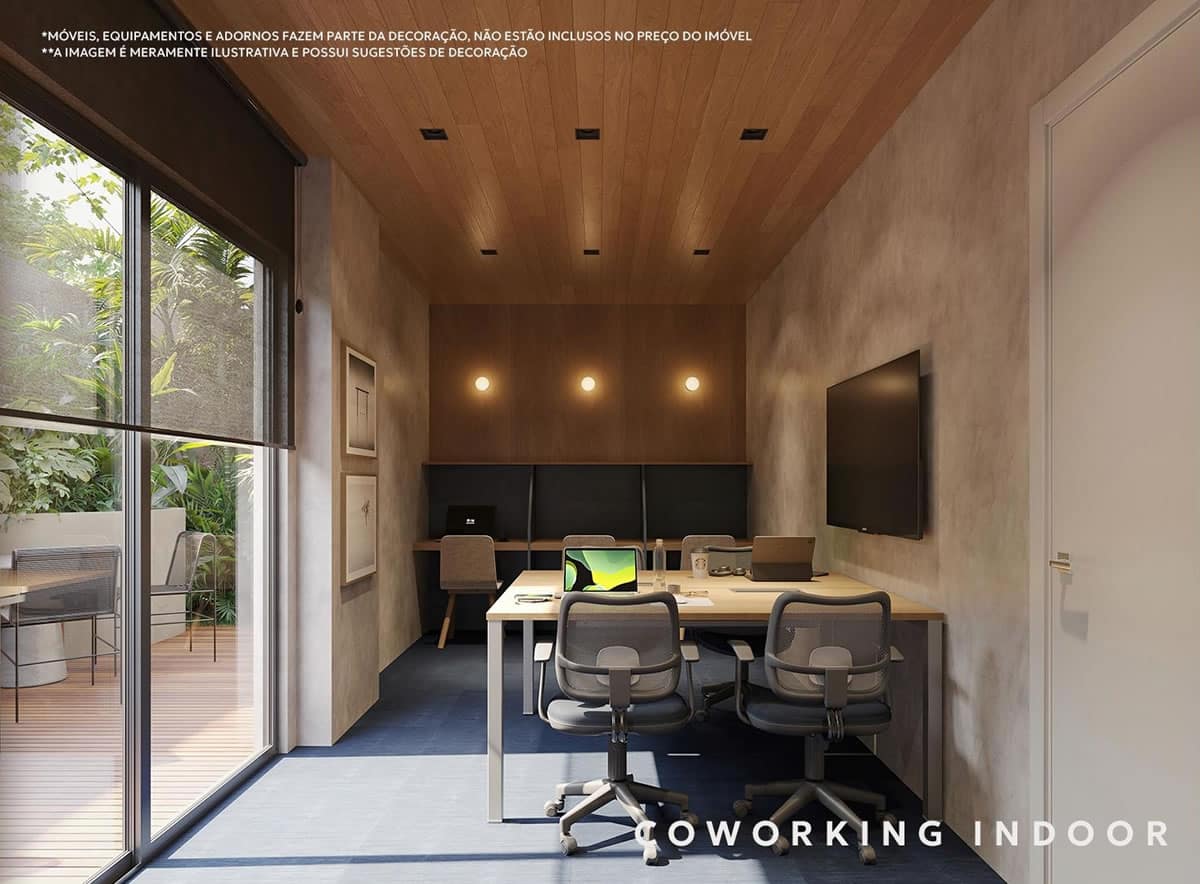 Coworking indoor do Mirantte: ambiente confortável e funcional, projetado para trabalho remoto e colaborações produtivas.