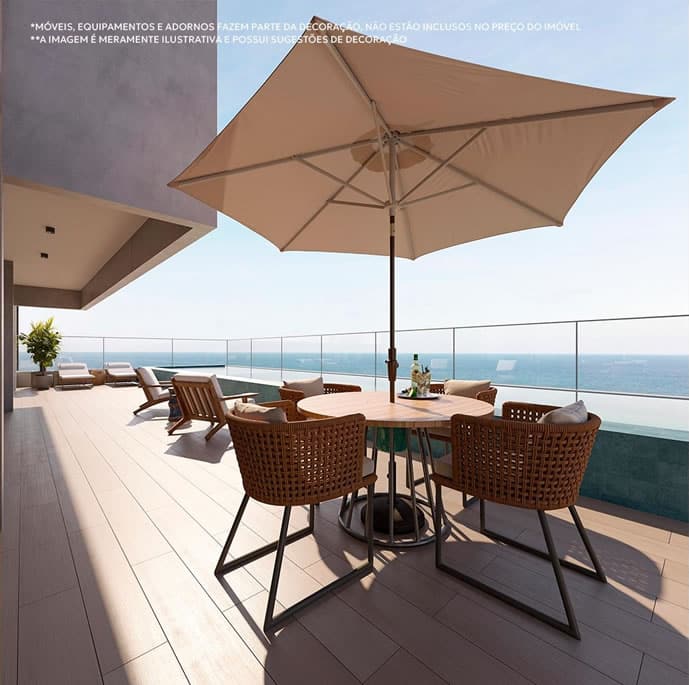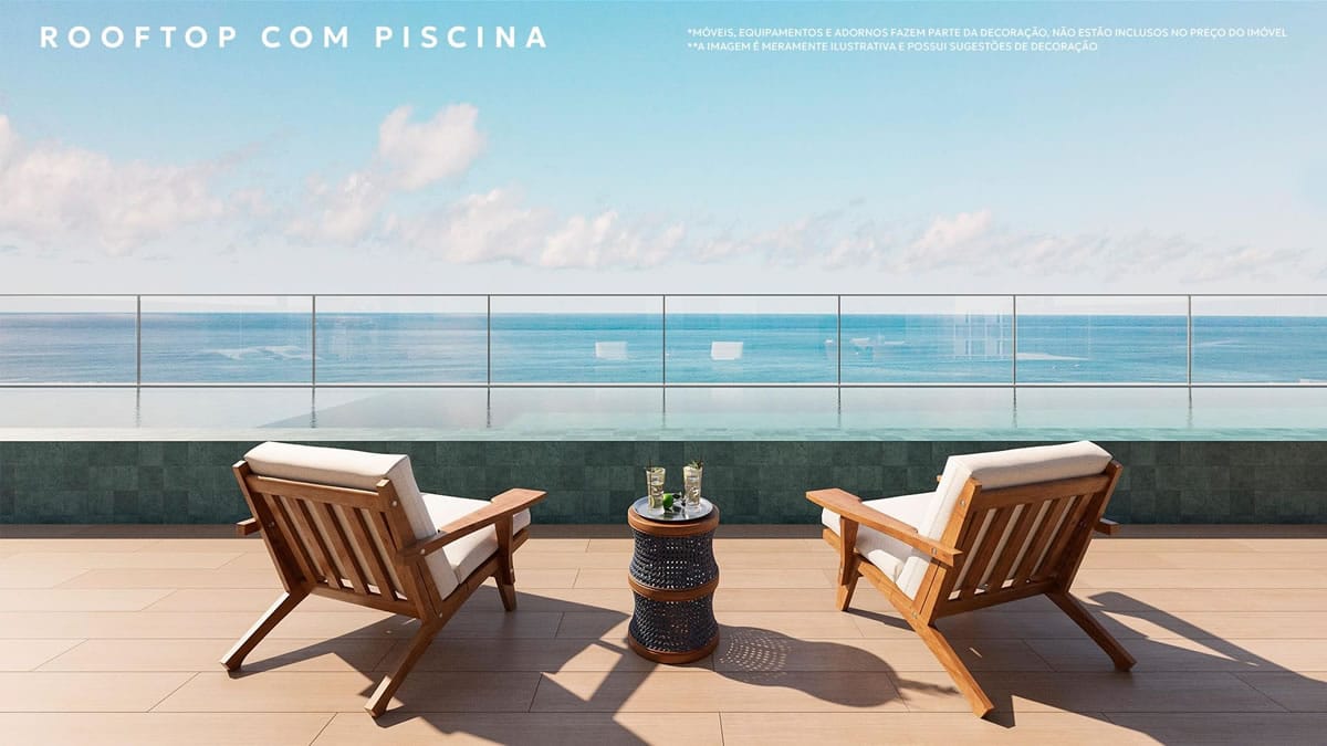 Rooftop com piscina no Mirantte: desfrute de uma vista espetacular para o mar enquanto relaxa no rooftop exclusivo do empreendimento.
