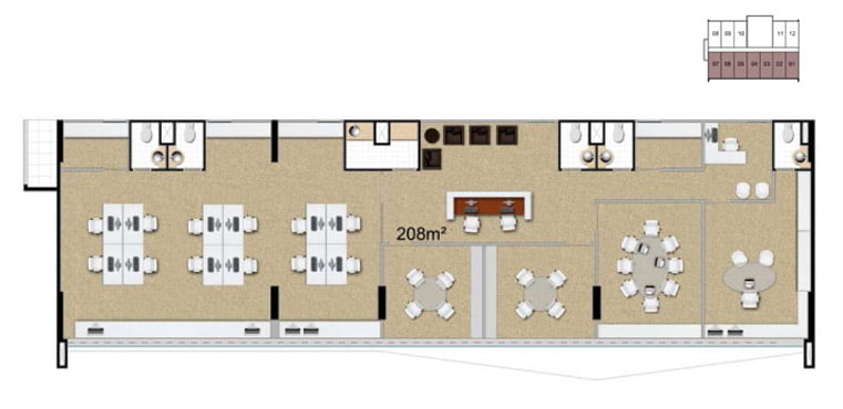 Planta Corporate – junção do pavimento – 3º ao 13º e 16º andar | 356,02m² |