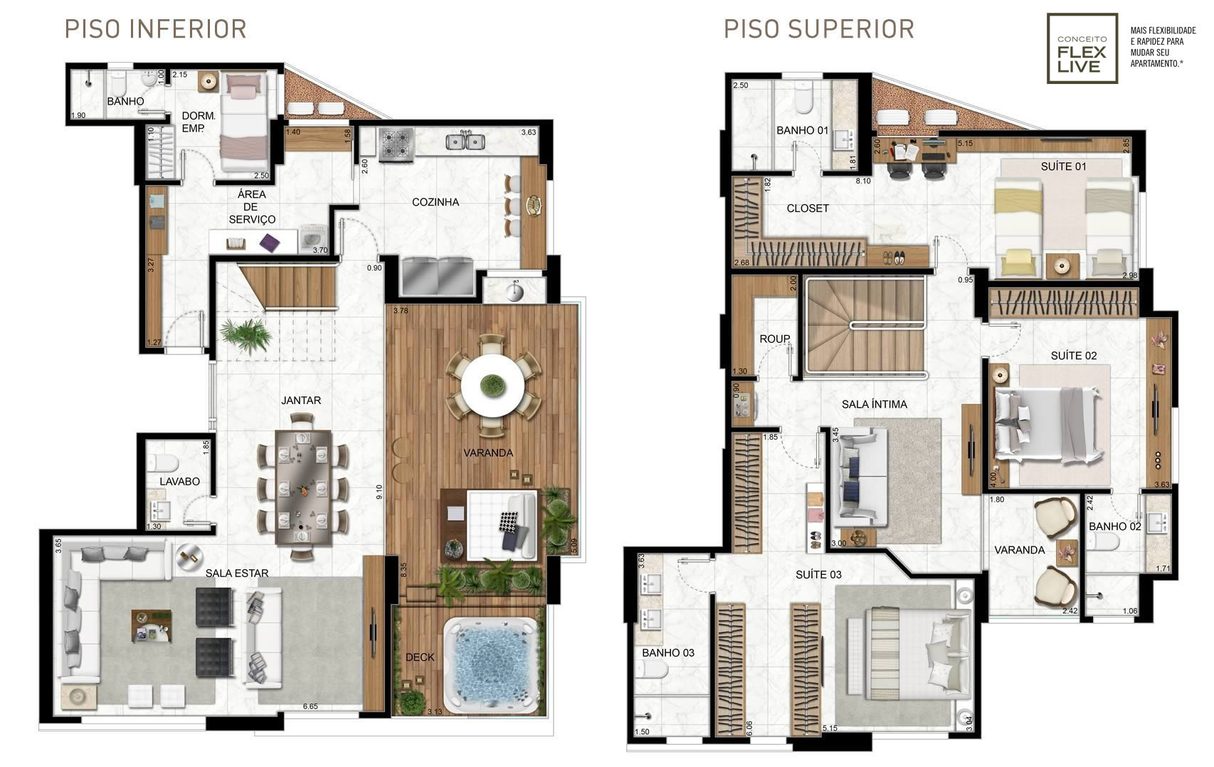 | Apartamento cobertura duplex com 3 suítes e jacuzzi | 3 | 3 | — | 220,25m² |