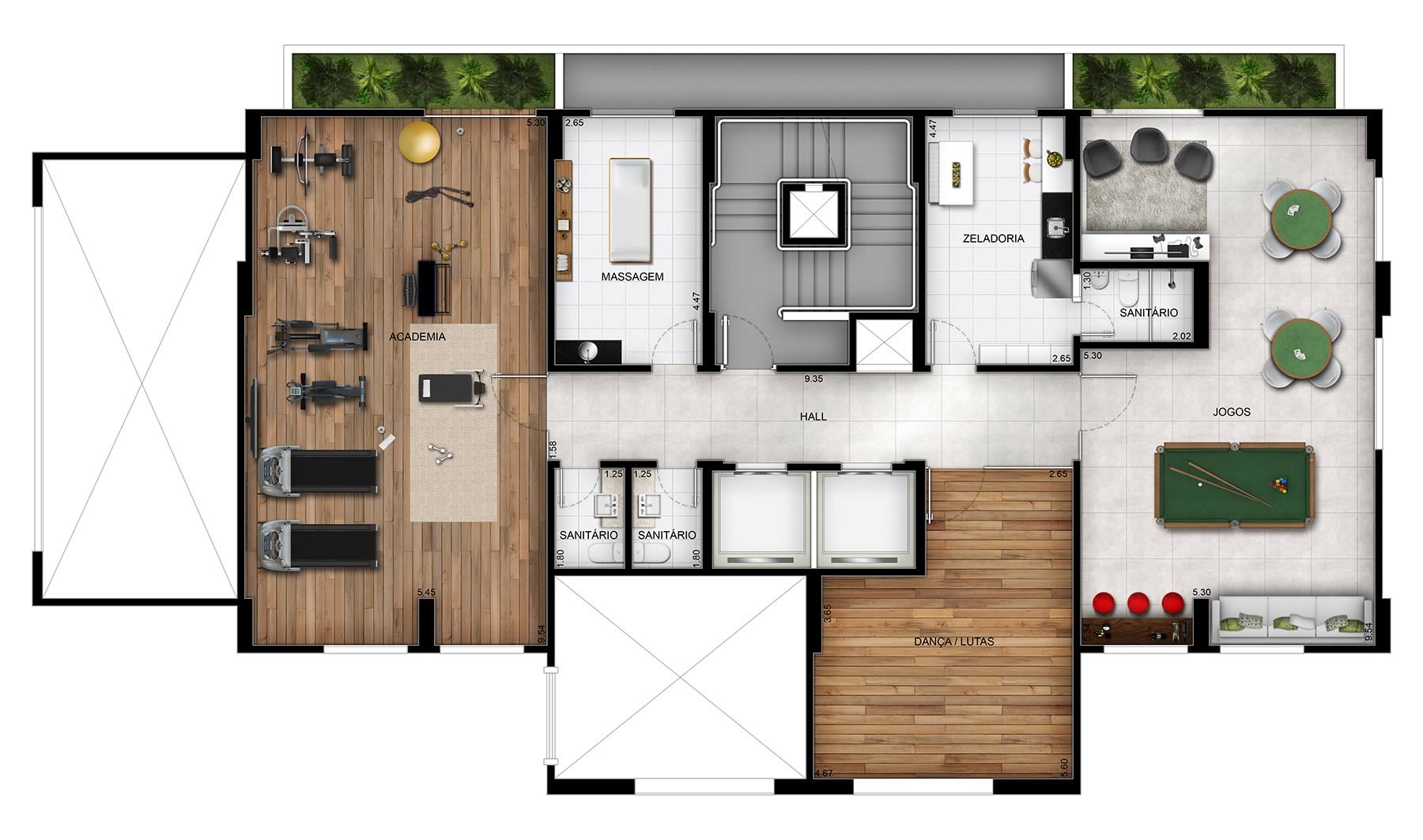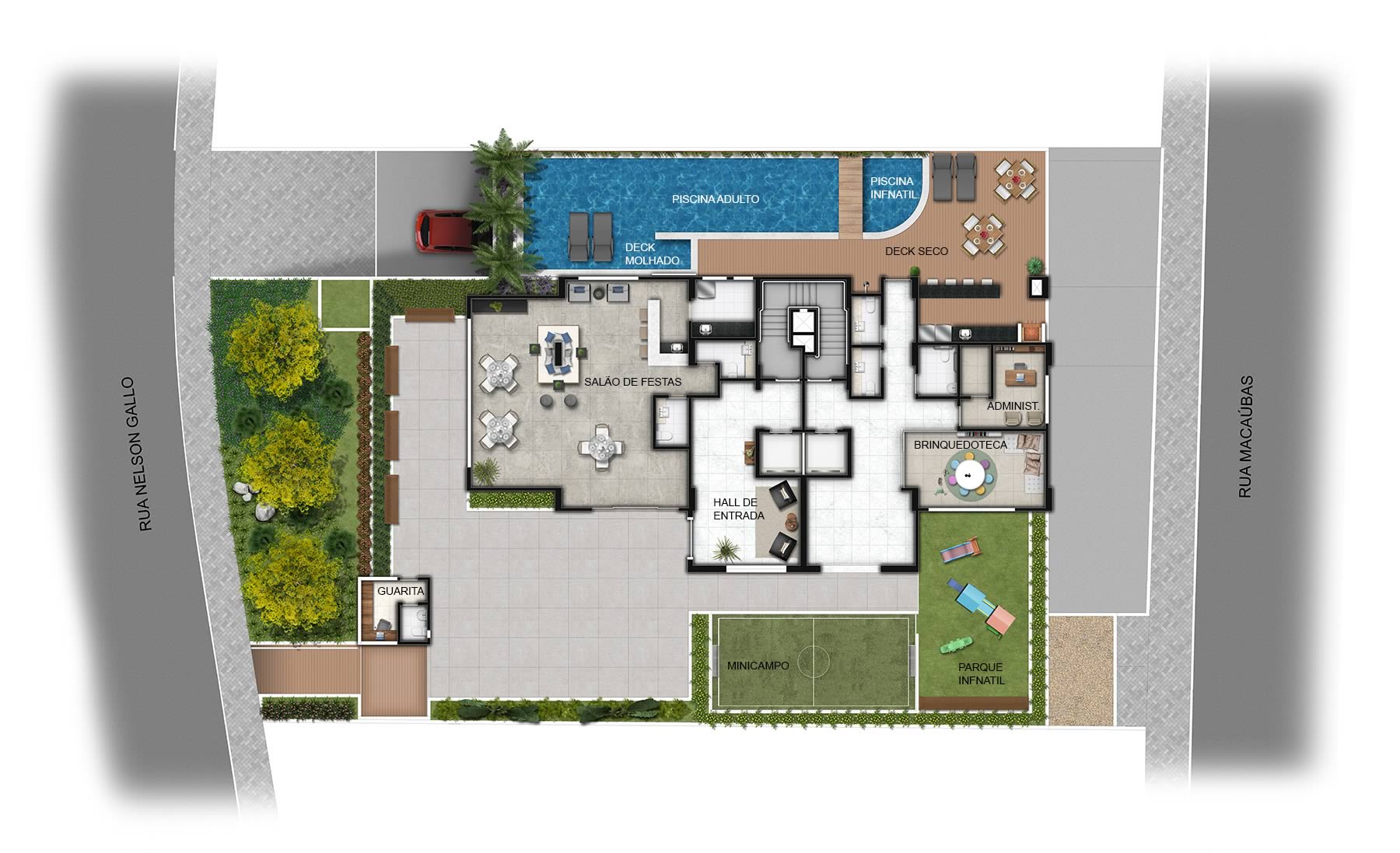 O projeto se preocupa nos mínimos detalhes com as normas e exigências para uma boa acessibilidade. São Vagas para portadores de necessidades especiais em todos os níveis de garagem, além de Rampas de acessibilidade nas áreas comuns.