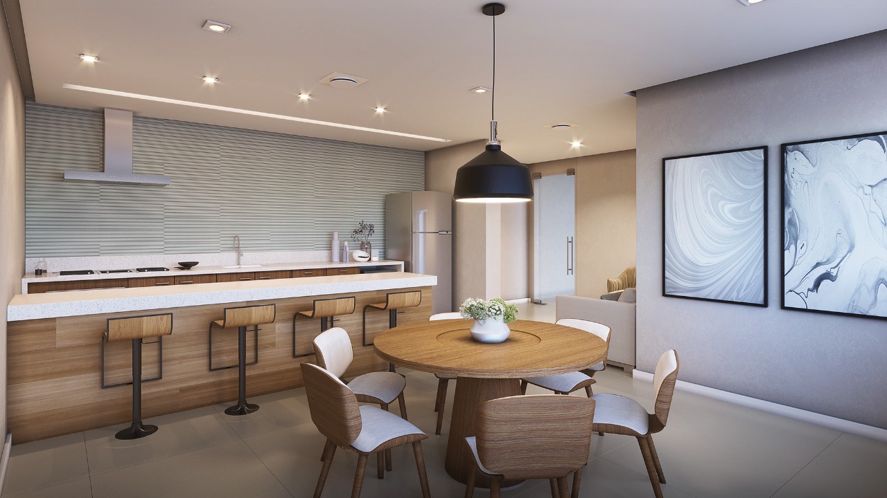 O empreendimento conta com alguns diferenciais, são eles: Piso porcelanato em todo o apartamento, nicho em mármore nos boxes dos sanitários, tomadas usb nas unidades, armários de cozinha e banheiro grátis, opção para depósito privativo na garagem, preparação para split na sala e nos quartos, sala de trabalho para os moradores, coworking para trabalho compartilhado, áreas comuns climatizadas com wi-fi, áreas comuns entregues equipadas sem custo adicional, 02 lojas no térreo, guarita com espaço delivery, painel solar para geração de parte da energia das áreas comuns.