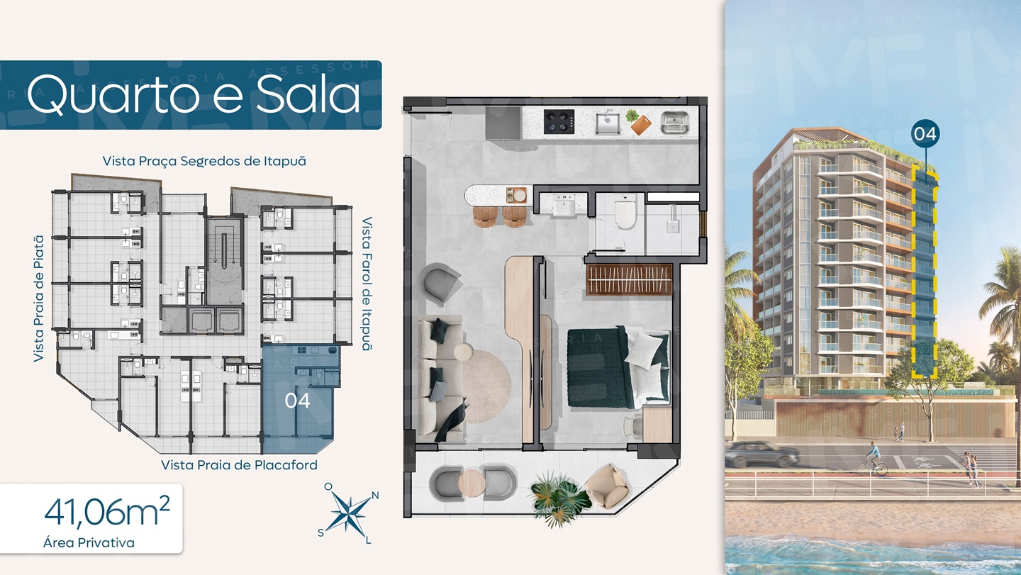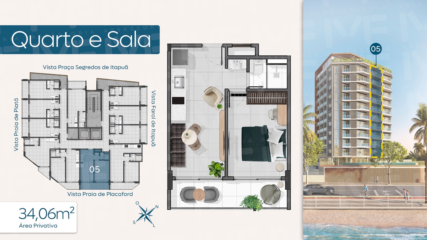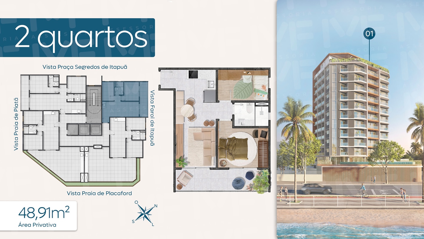 - Áreas Comuns: Coworking, Delivery Room, Bicicletário, Guarderia de Pranchas e mais.