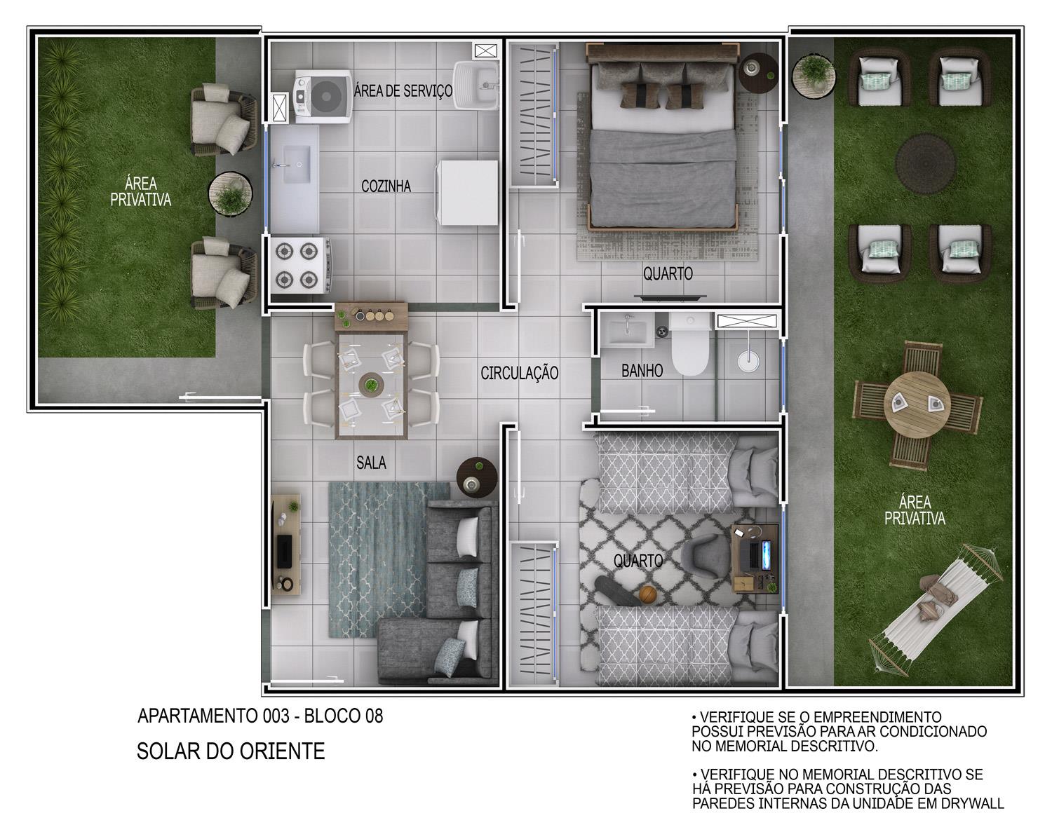 Mais que um apartamento, o novo jeito de viver. O Solar do Oriente oferece: lazer equipado, coleta seletiva, sistema de segurança, energia solar, laminado na sala e quartos e muito mais.