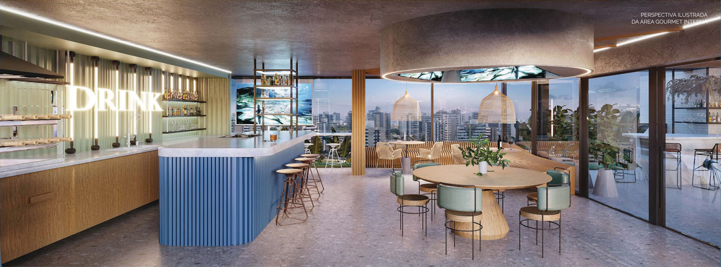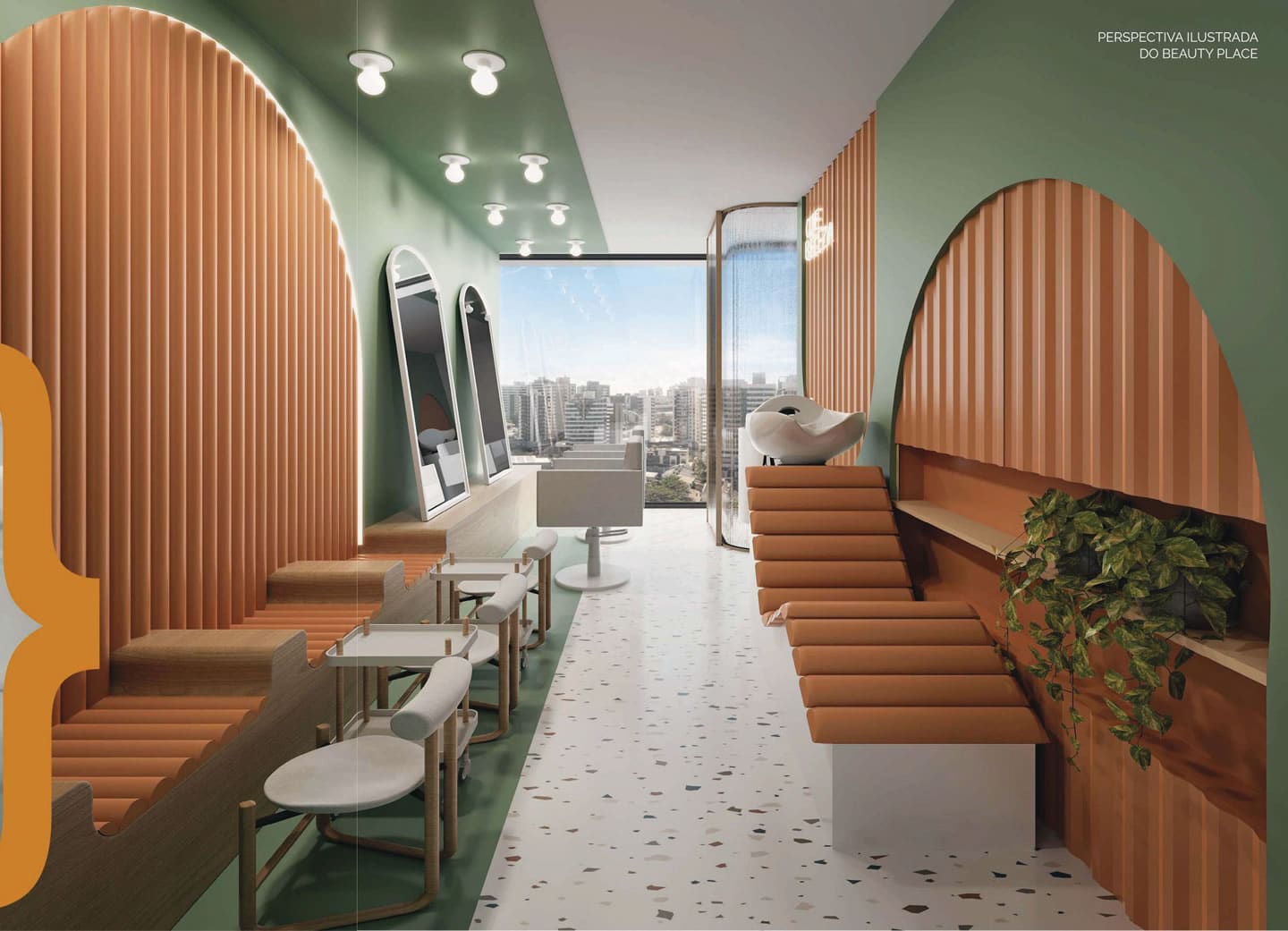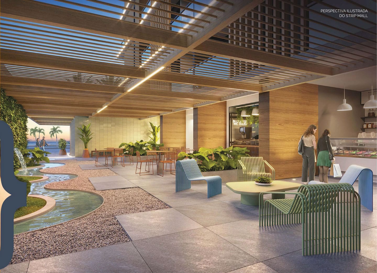 - Áreas Comuns: Rooftop com piscina de borda infinita, espaço fitness, strip mall integrado, business lounge, pet place, lavanderia, entre outros.