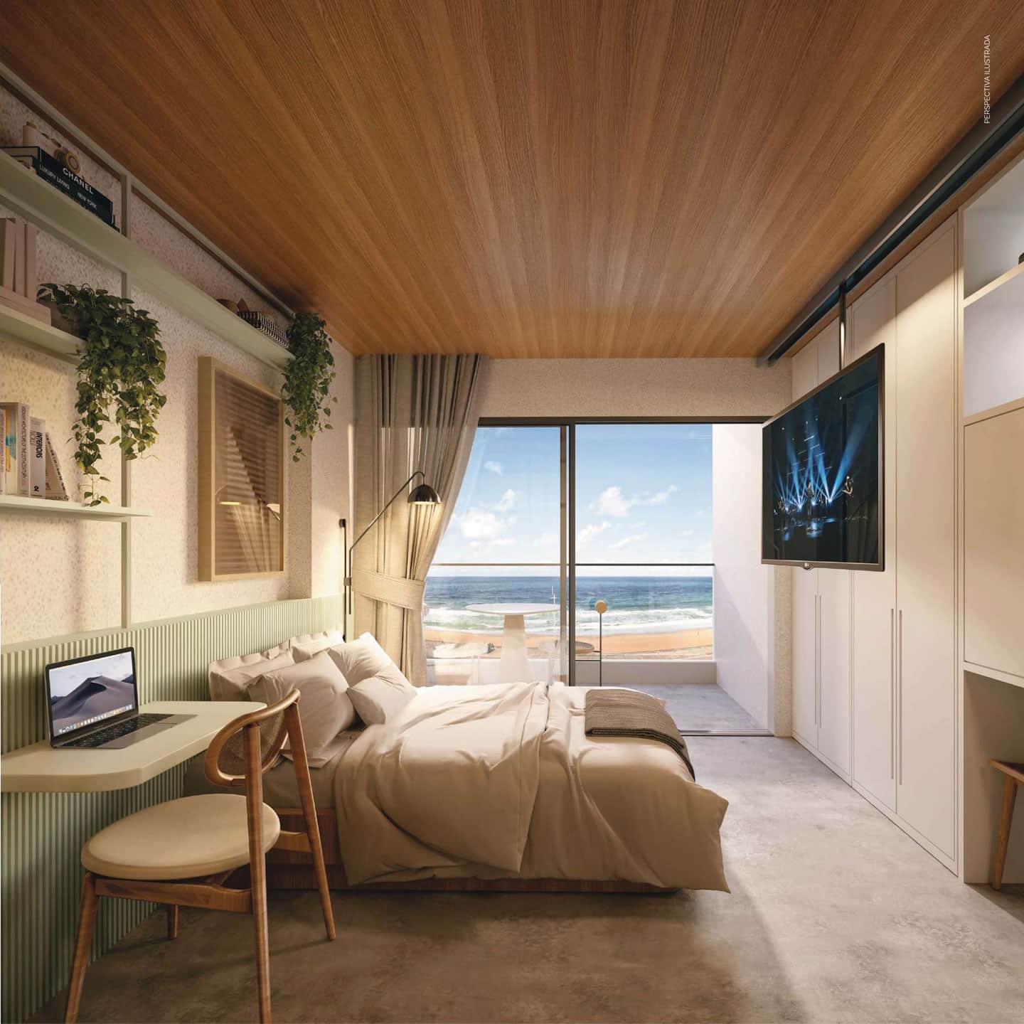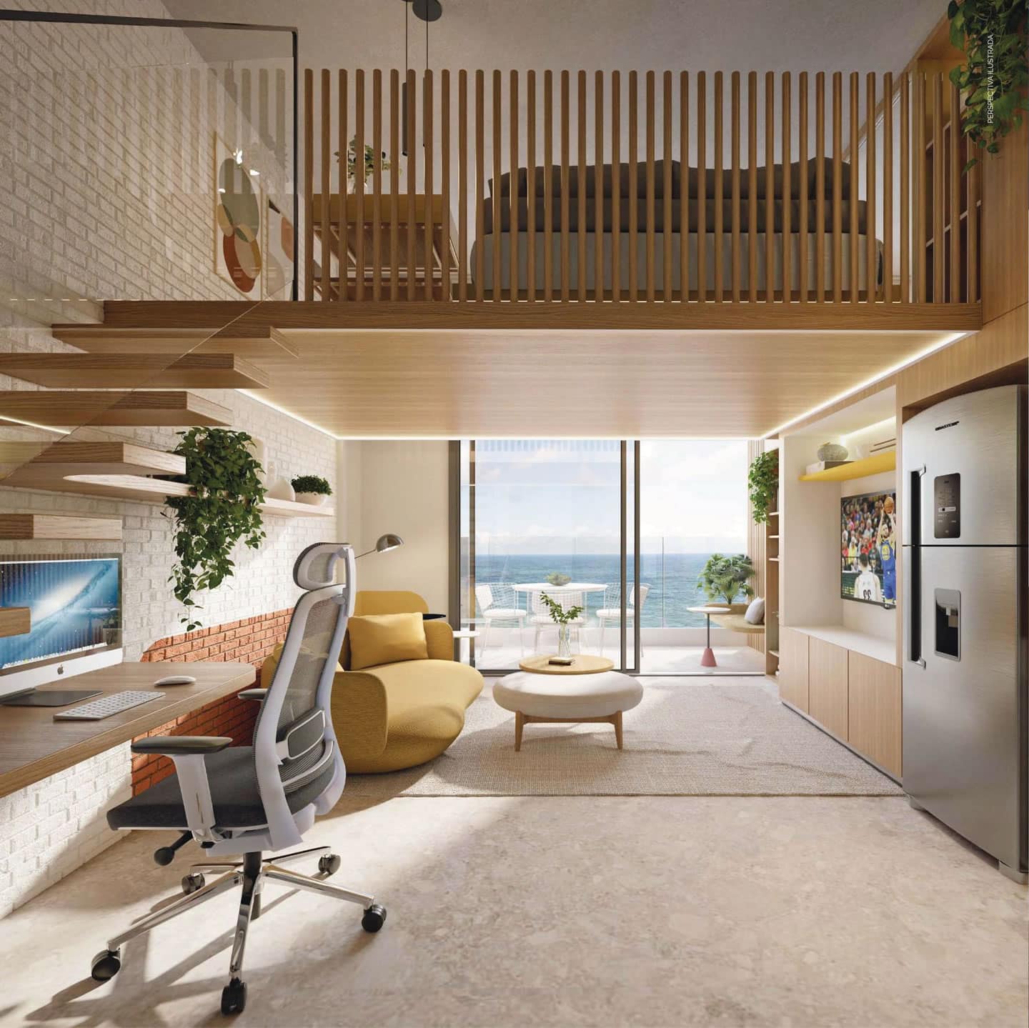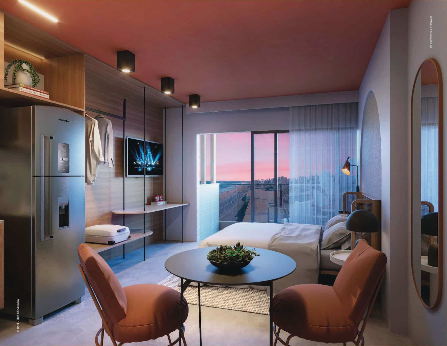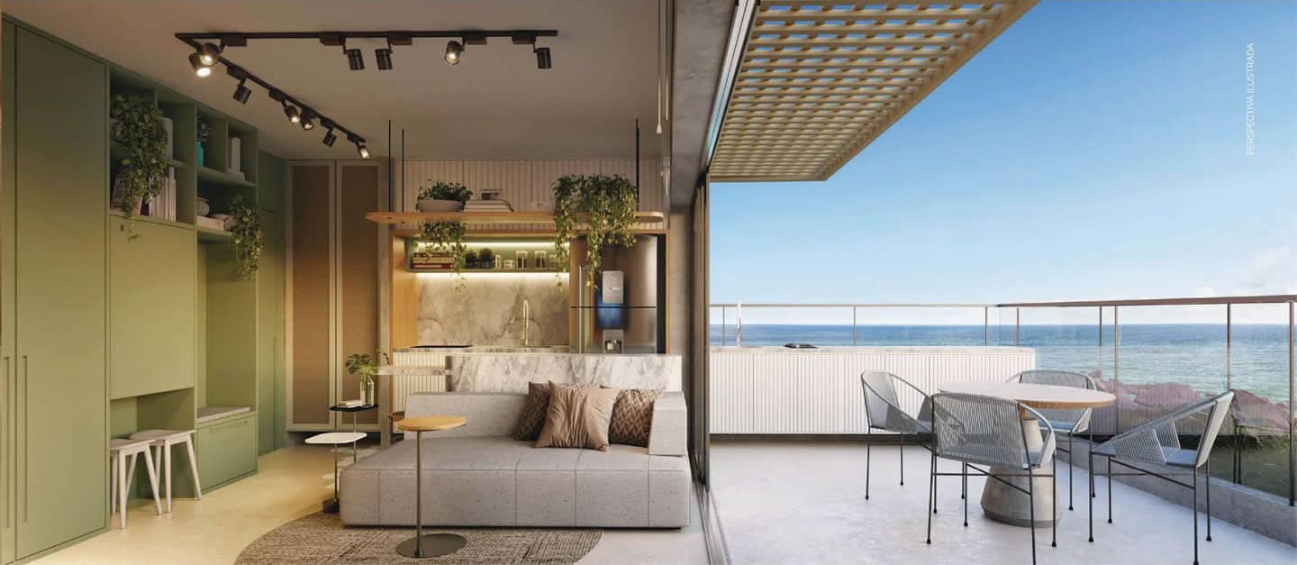 | Apê Coast | Apartamento de 1 quarto e sala ou studio, varanda com vista lateral para o mar. | 18,26m² a 35,24m² |