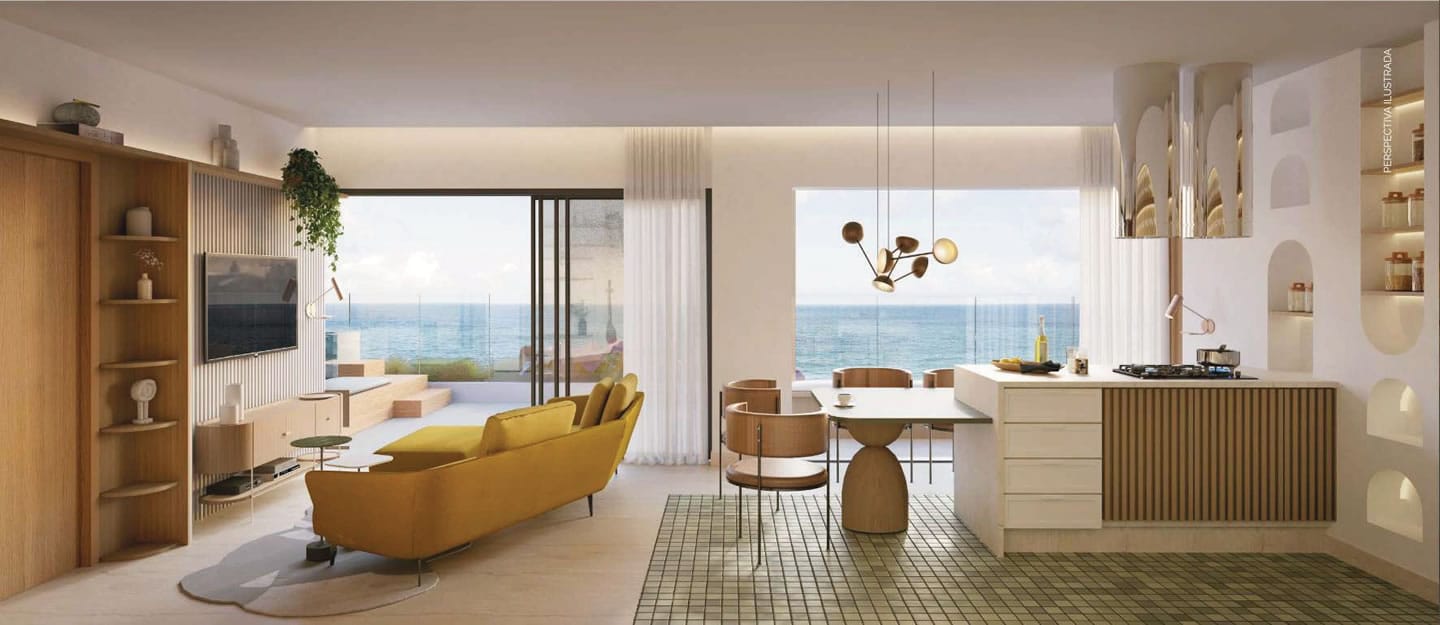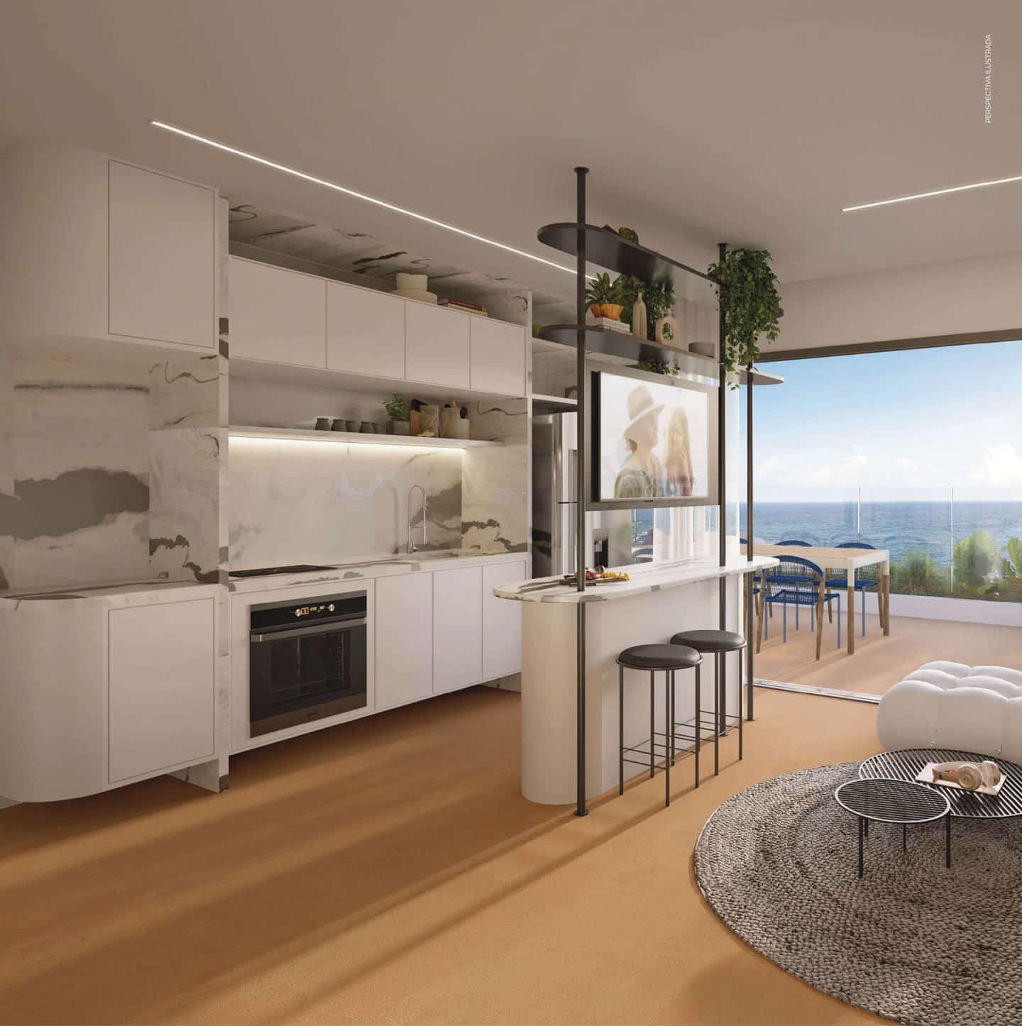 Confira as imagens exclusivas das áreas comuns e apartamentos decorados do Terrazza Balena, que destacam o design sofisticado e as vistas espetaculares para o mar.
