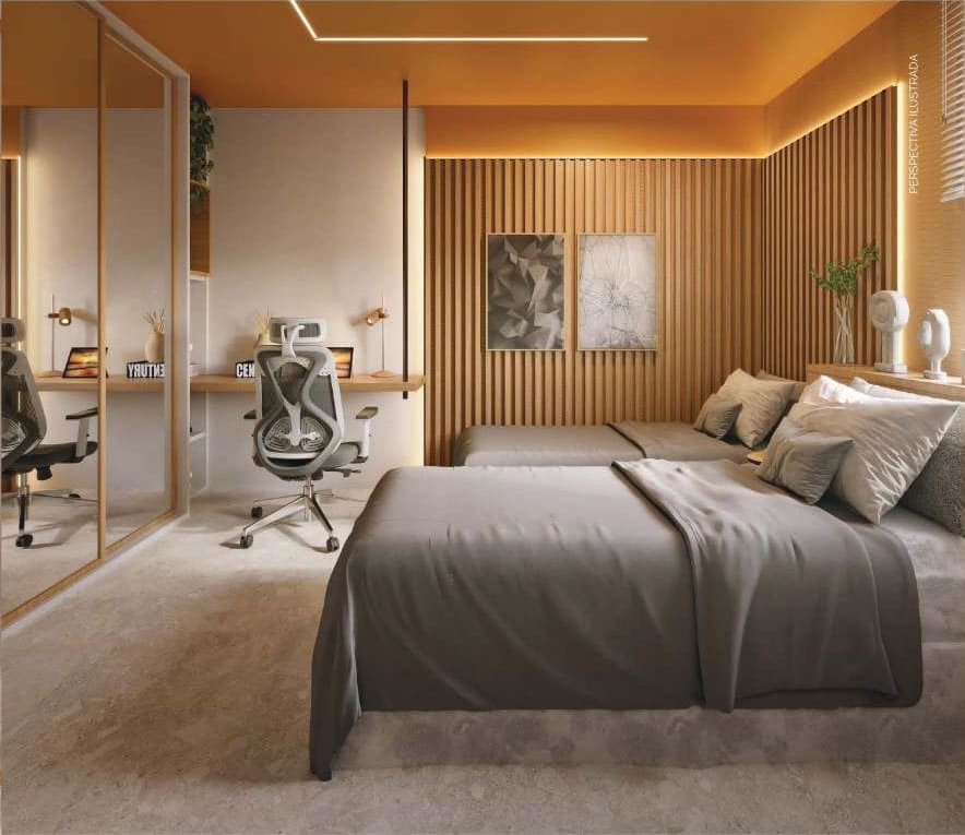- Localizado na fachada do fundo, com tamanhos entre 22,52m² e 27,71m².