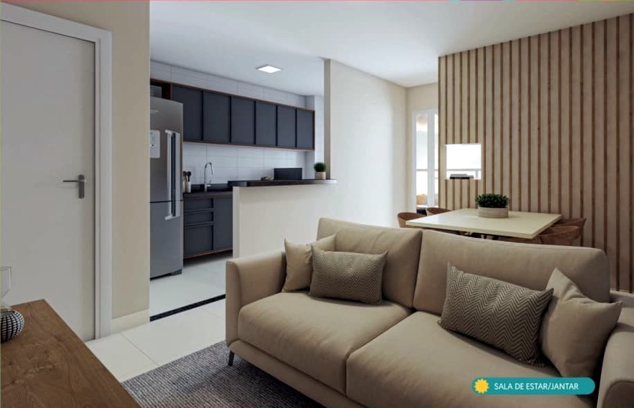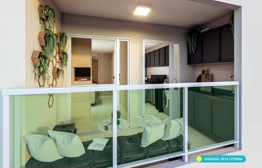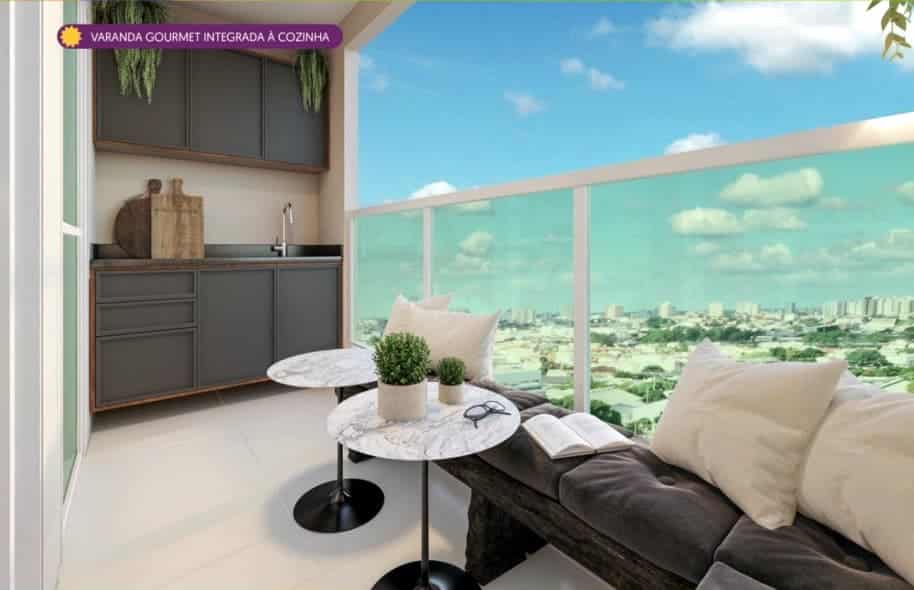Todos os apartamentos do Viver Aruana contam com cozinha americana, varanda gourmet integrada à cozinha e ambientes otimizados para a vida moderna.