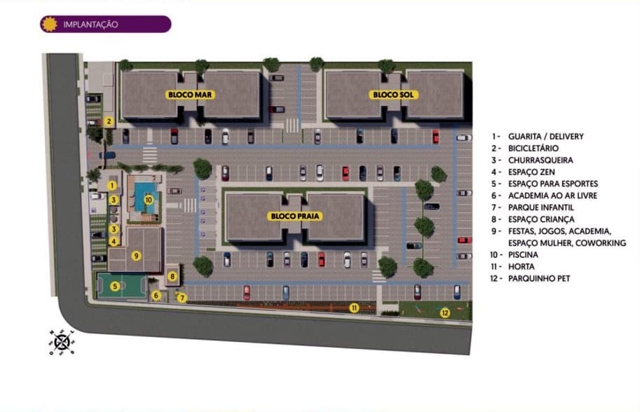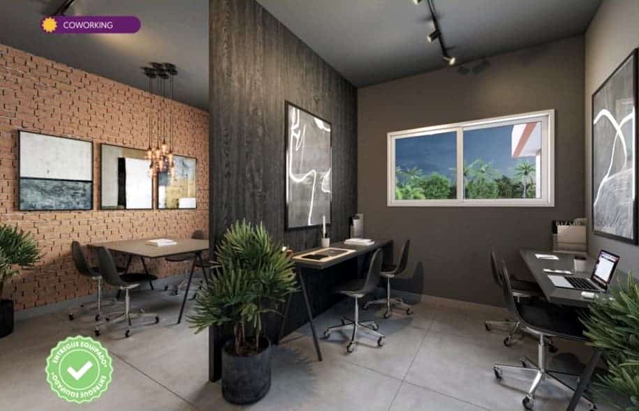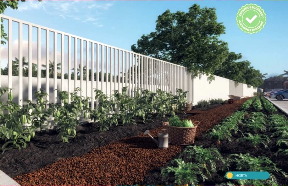 - Áreas comuns: Coworking, Horta e Espaço Mulher;