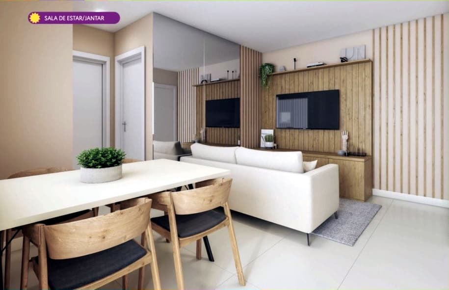 A planta dos apartamentos do Viver Aruana foi pensada para otimizar os espaços e facilitar o dia a dia. Há opções adaptadas para PCD, garantindo acessibilidade com o mesmo padrão de conforto.